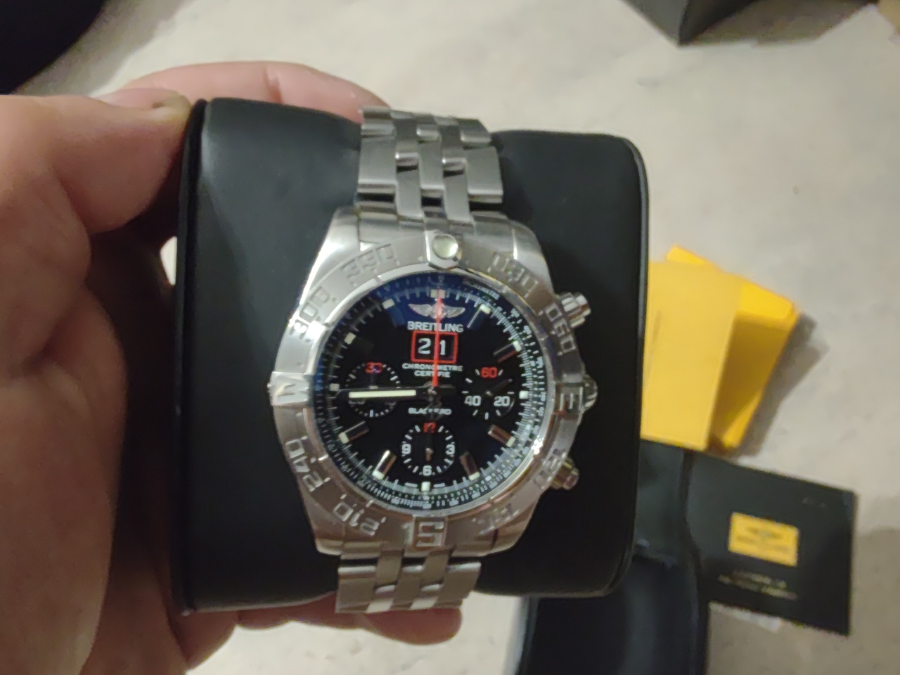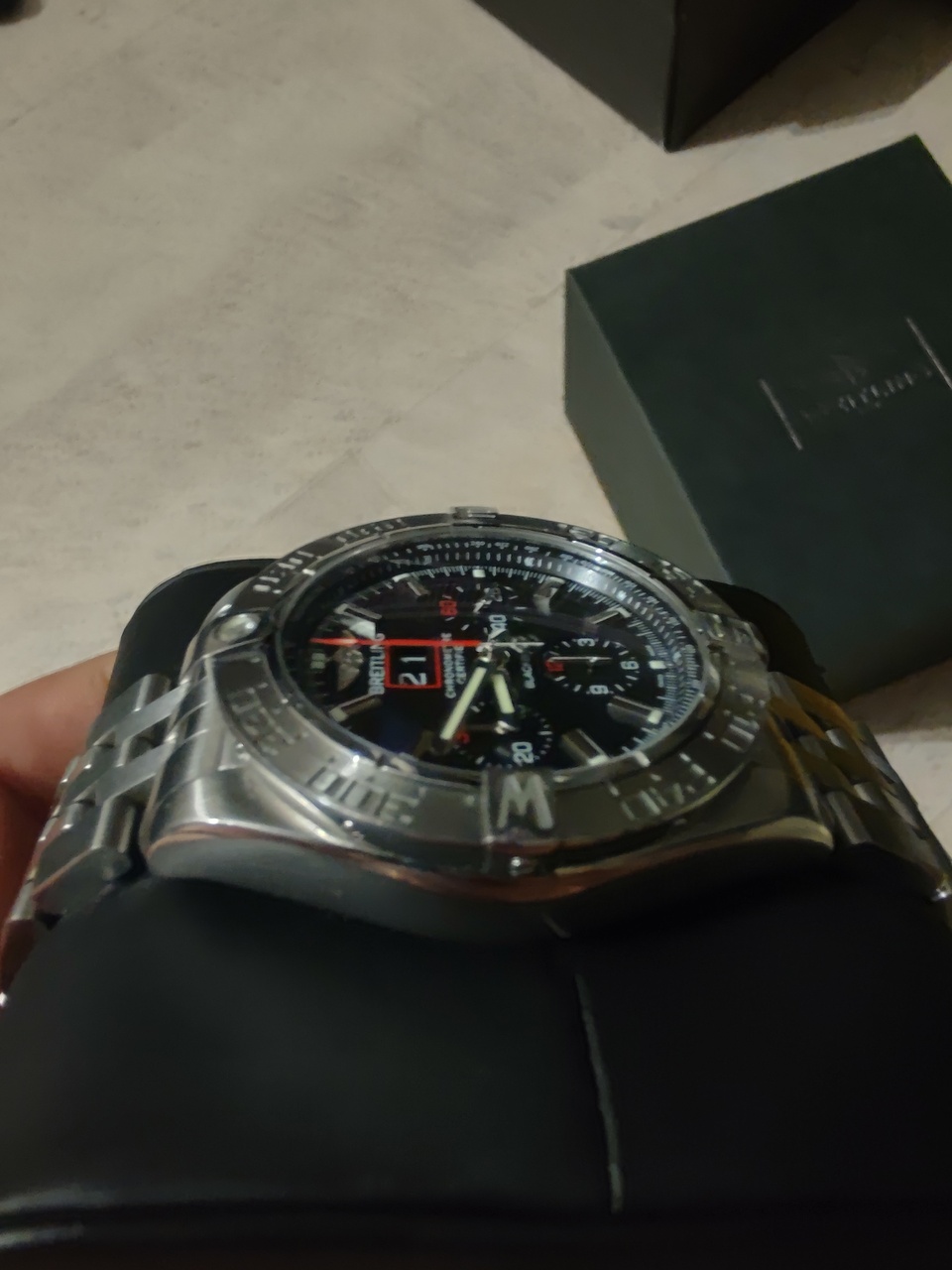 Калибр: Breitling 44. Часы, минуты, секунды, большая дата. Хронограф. Запас хода: 72 часа. Корпус выполнен из нержавеющей стали. Диаметр корпуса: 44 мм. Малая секундная стрелка. Люминесцентные стрелки и метки. Сапфировое стекло антибликовым покрытием. Вращающийся безель. Завинчивающаяся заводная головка. Лимитированная серия: 2000 штук.
