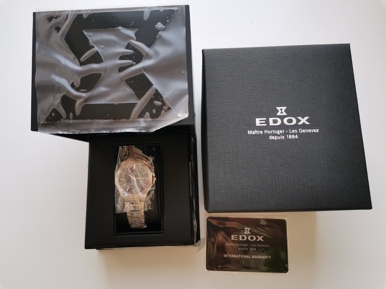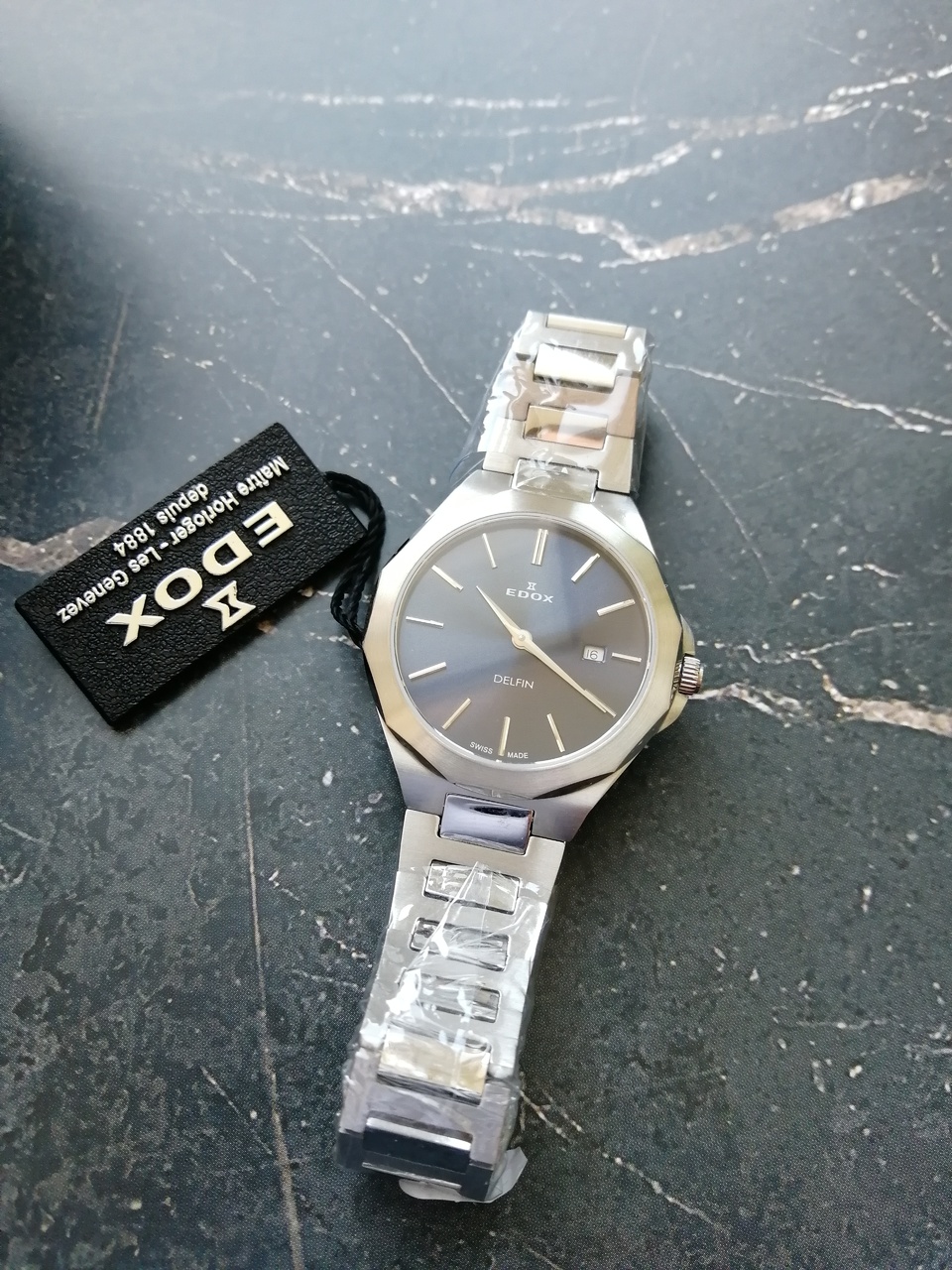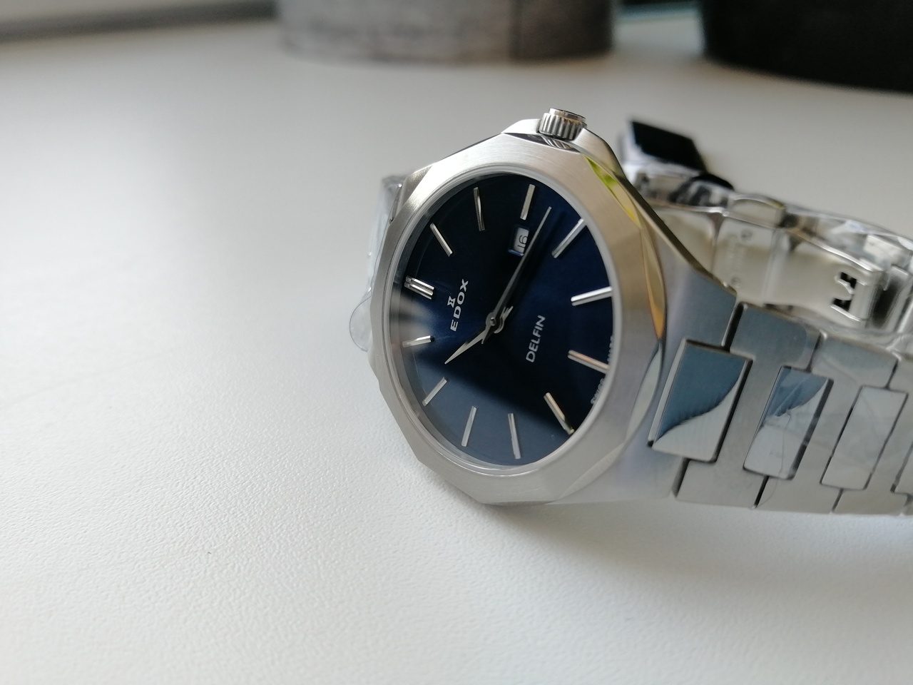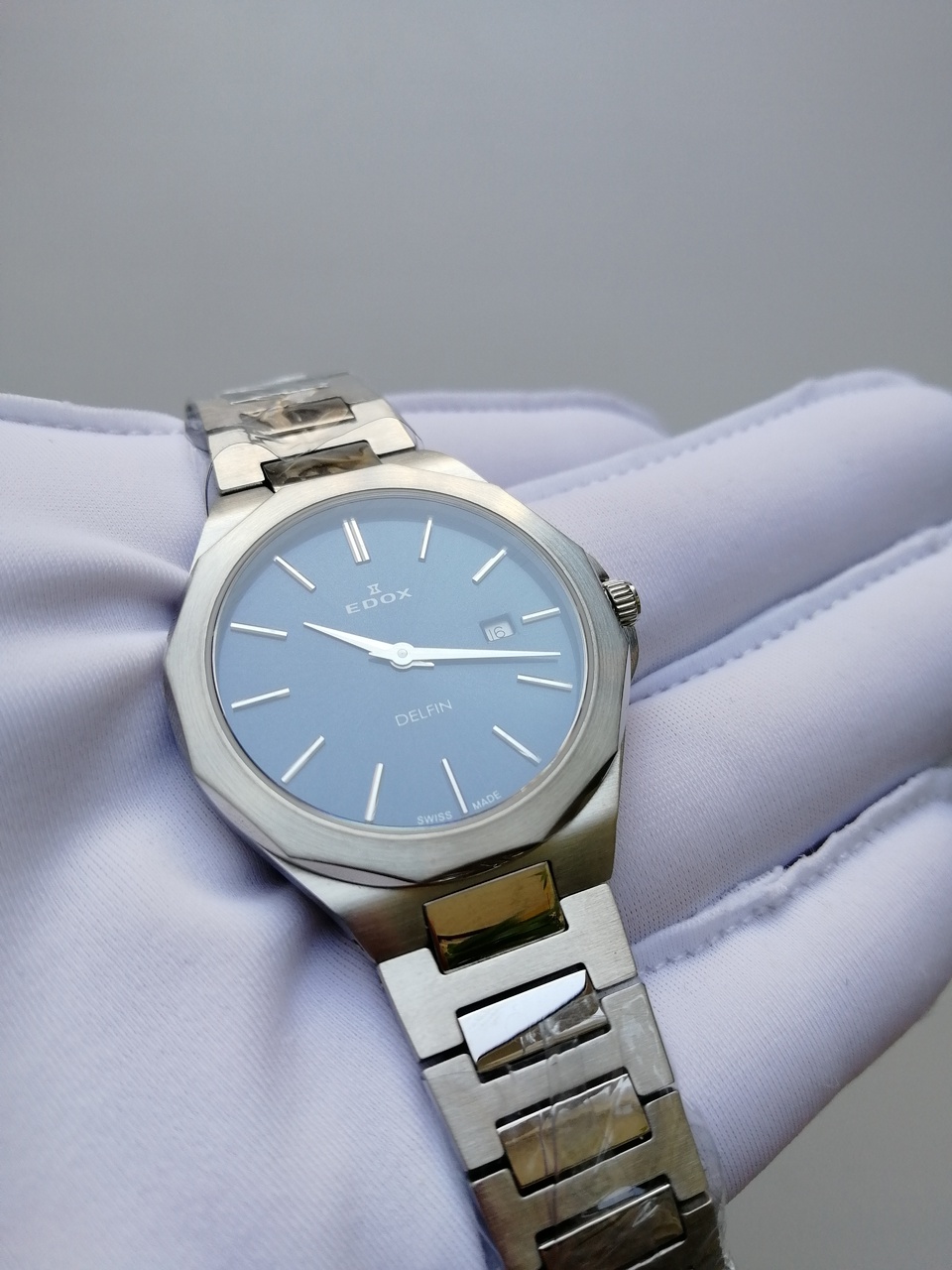В продаже недавняя новинка от Edox. Замечательные легкие кварцевые часы с удобной посадкой. Запоминающийся, но, в то же время, строгий и лаконичный дизайн. Отличное качество отделки с сочетанием полировки и сатинирования, литой браслет. Глубокий насыщенный цвет цифера с эффектом sunburst, переливающийся от тёмно-синего до черного в зависимости от освещения, накладные метки. Вживую часы смотрятся очень солидно