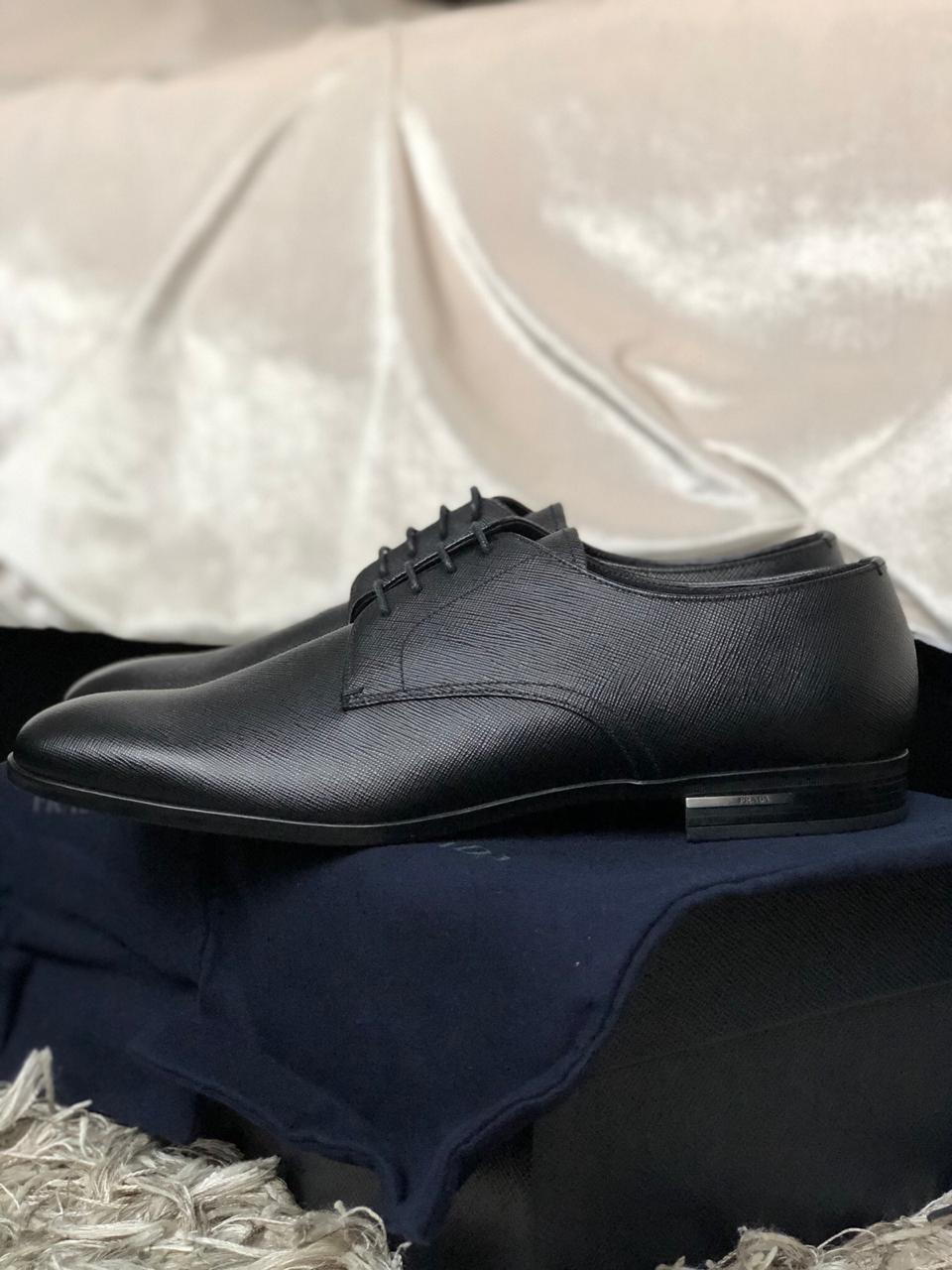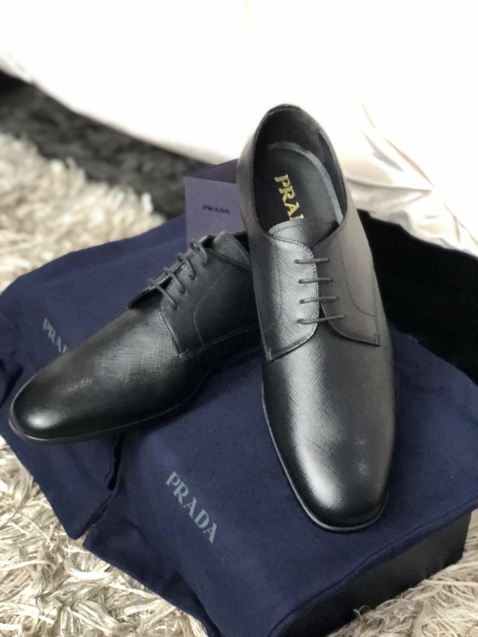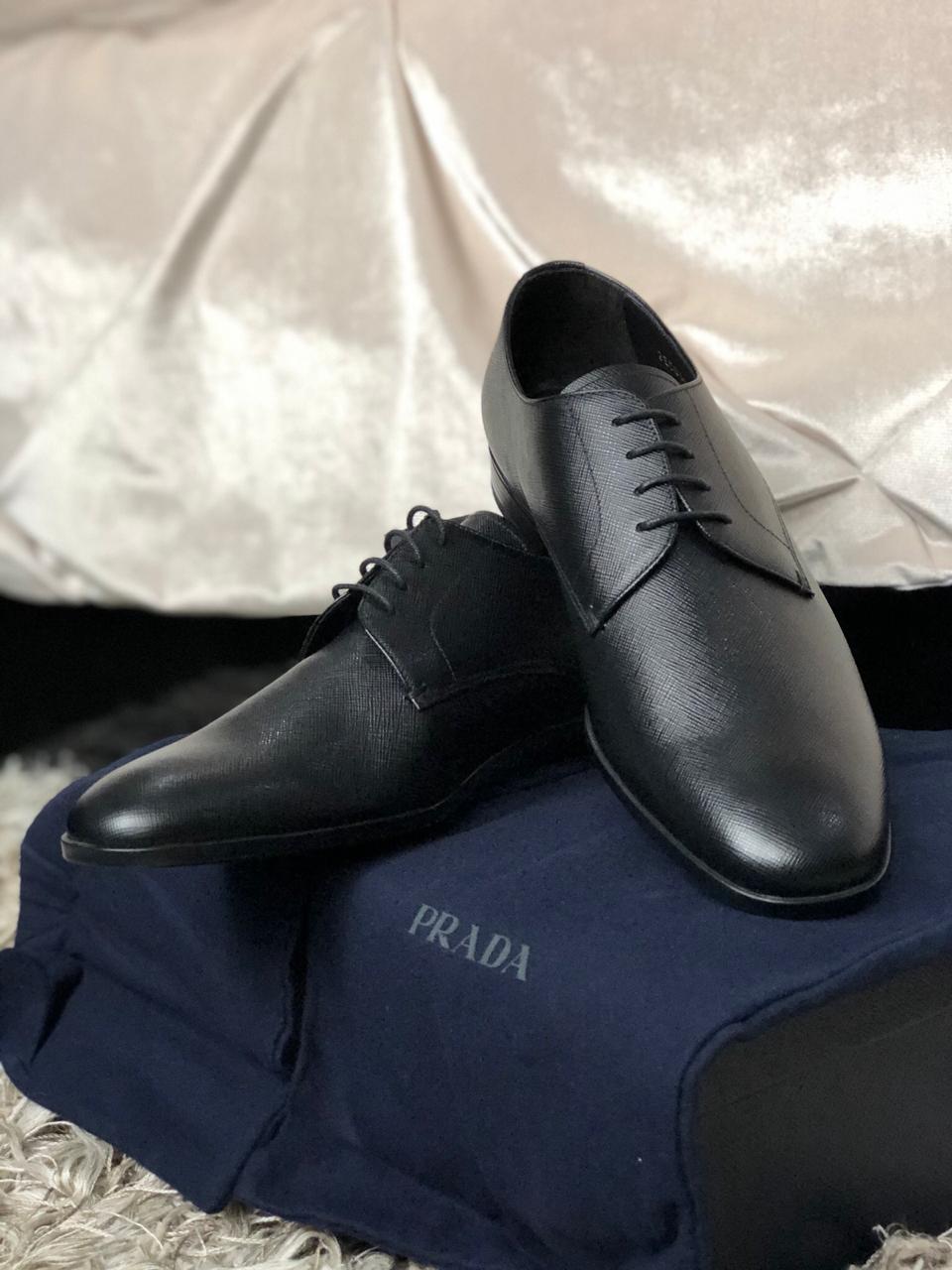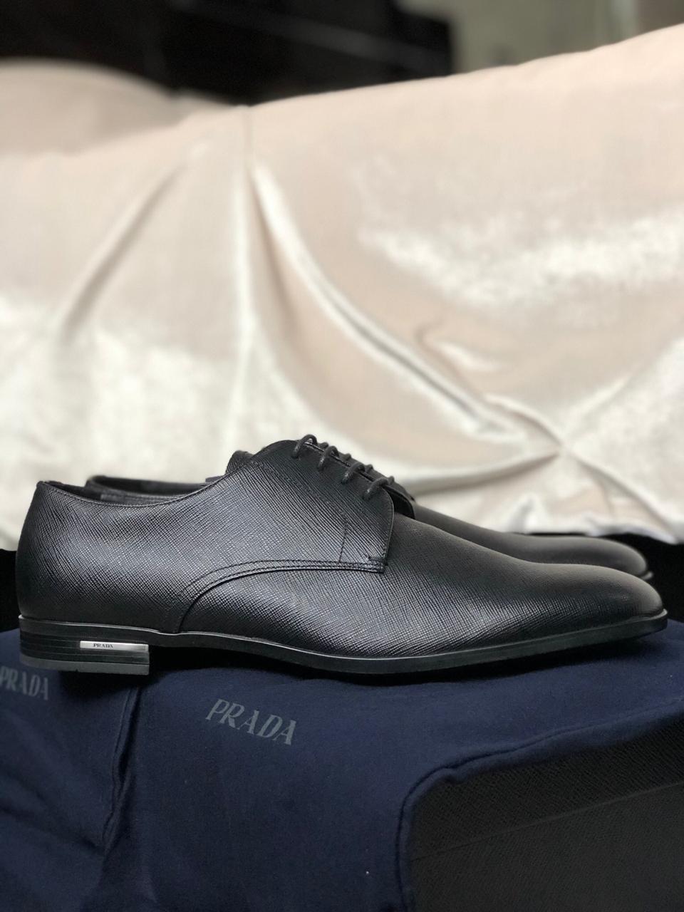 В продаже новые мужские туфли-дерби от известного итальянского дома моды PRADA.