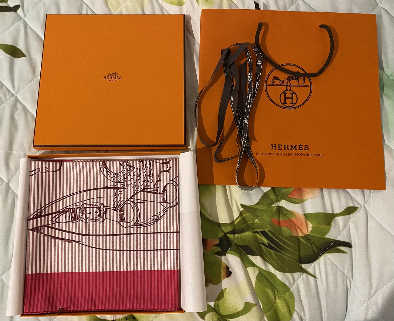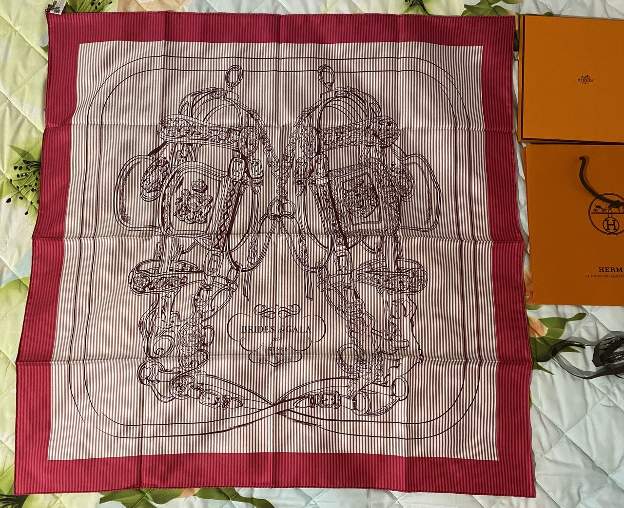 Платок HERMÈS (шелк, 90 см, Brides De Gala)