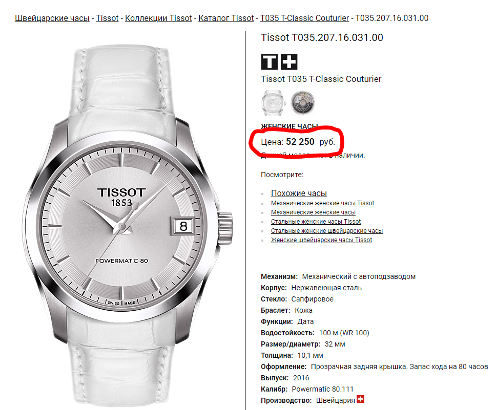 Калибр: Powermatic 80.141 (Запас хода - 80 часов)