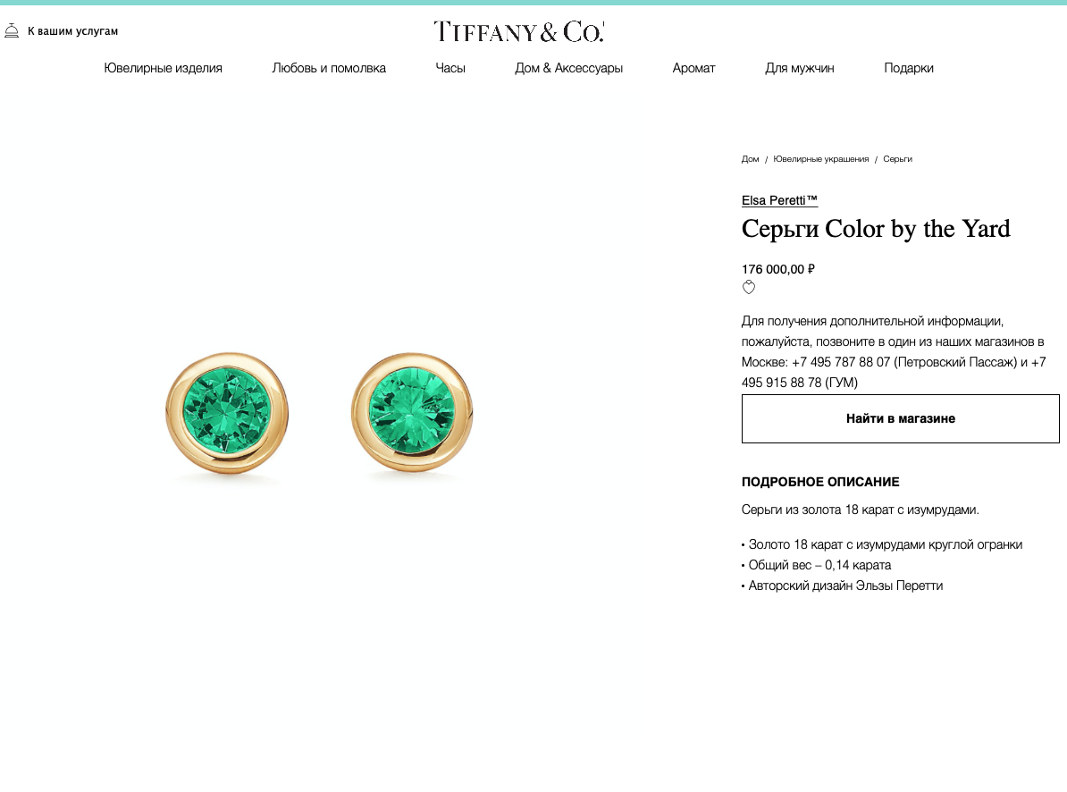 ПУСЕТЫ TIFFANI & CO Elsa Peretti™ ЖЕЛТОЕ ЗОЛОТО С ИЗУМРУДАМИ