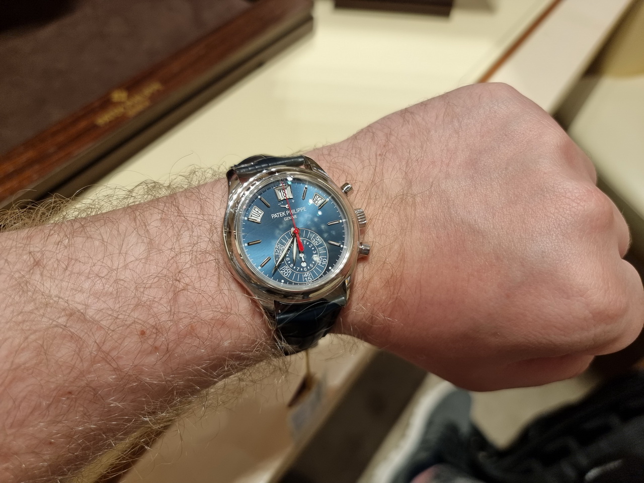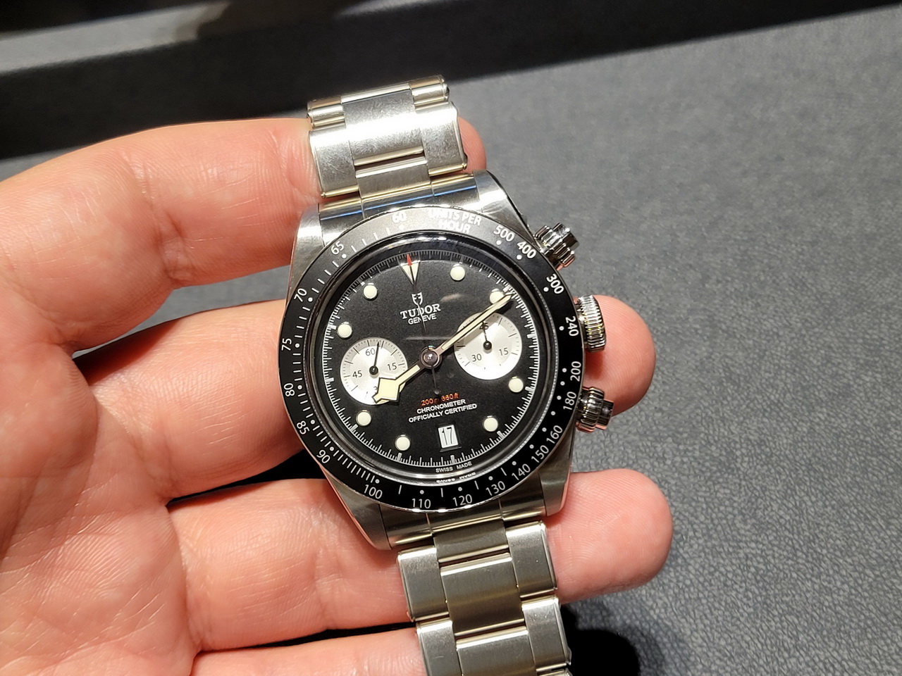 Tudor довольно большой выбор, хотя нет панды хронографа и BB58 маловато. В наличии был Pepsi на тряпке и можно было черный хроно померить, что я и сделал. В целом в Дубай привезли лишь 8 хронографов обоих цветов (в России их была, кажется, парочка в первой партии). Спрос есть и панды расписаны на многие месяцы. Ощущения от свежих Tudor такие же, какие были после BBB - просто, но со вкусом, без претензий на что-либо. Но даже в связи с огромным дефицитом популярных моделей Rolex желания купить что-то от Tudor вообще не возникает.
