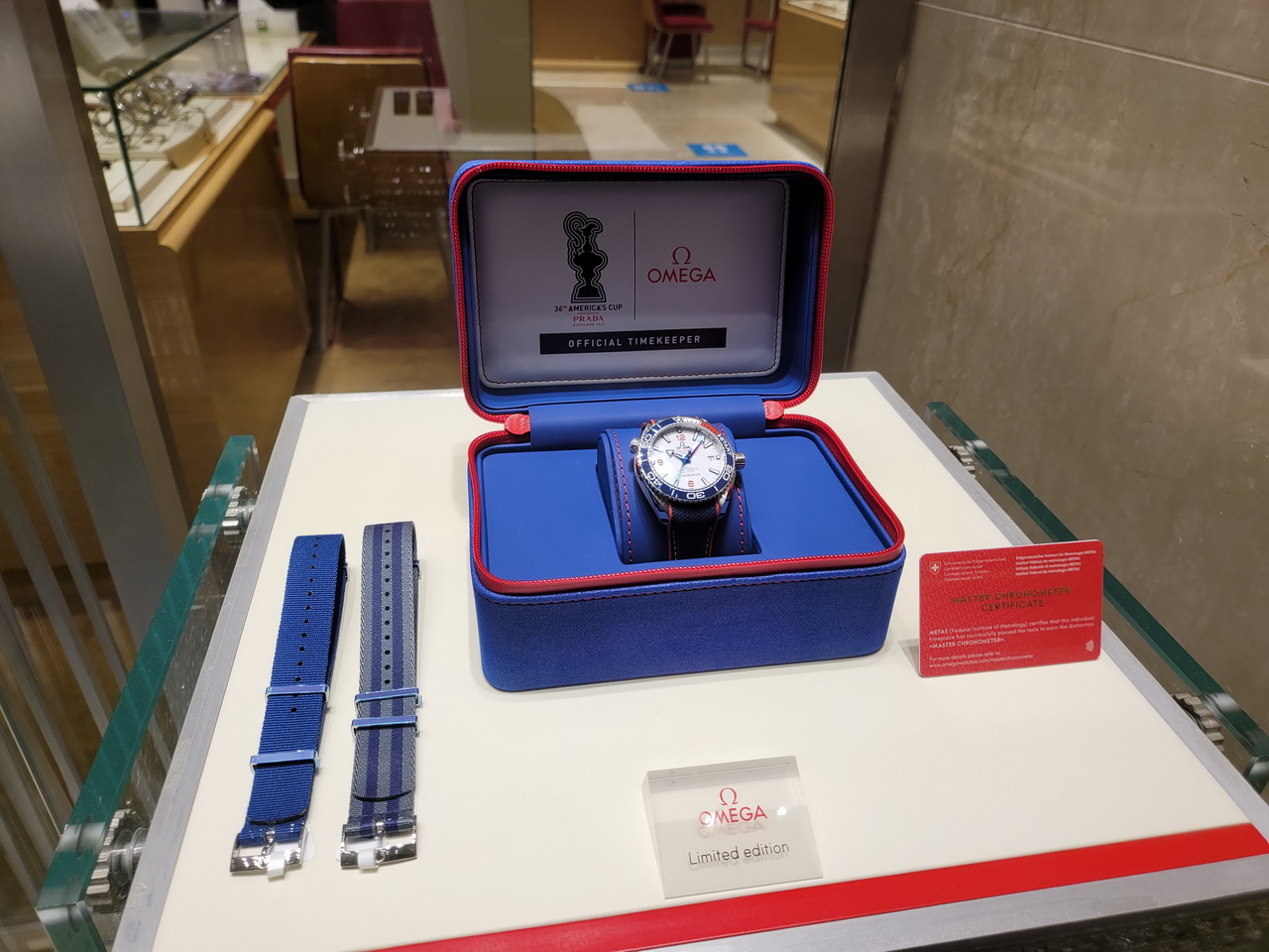 Omega немного орнул, когда увидел очередные "лимитки". В наличии много всего (кажется, нет лишь Снупи). Цена Speedmaster на фото - 23 850 дирхам (22 824 после налога). В стали встал бы в 27 750 (23 900 дирхам после возврата налога). Часы дико легкие и весьма простыми показались.