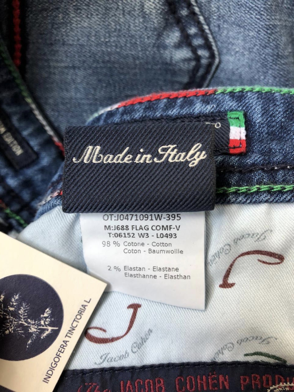 JACOB COHËN новые мужские джинсы синего цвета с потёртостями J688 Italian Flag (34 size)