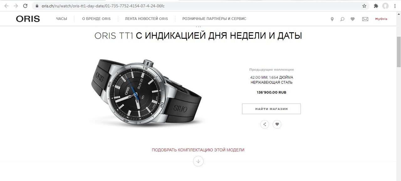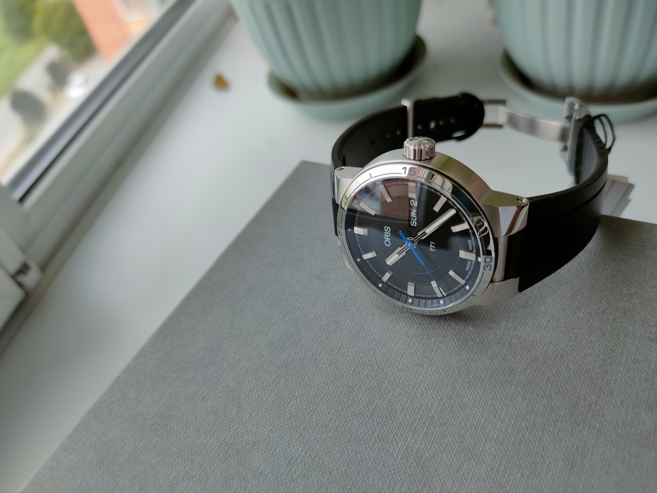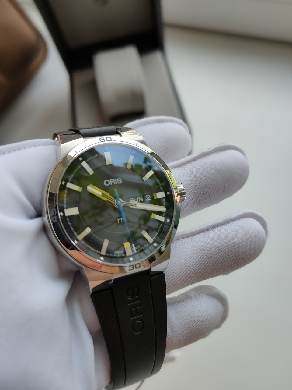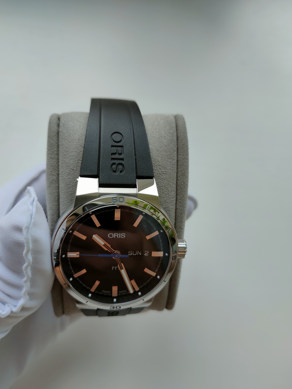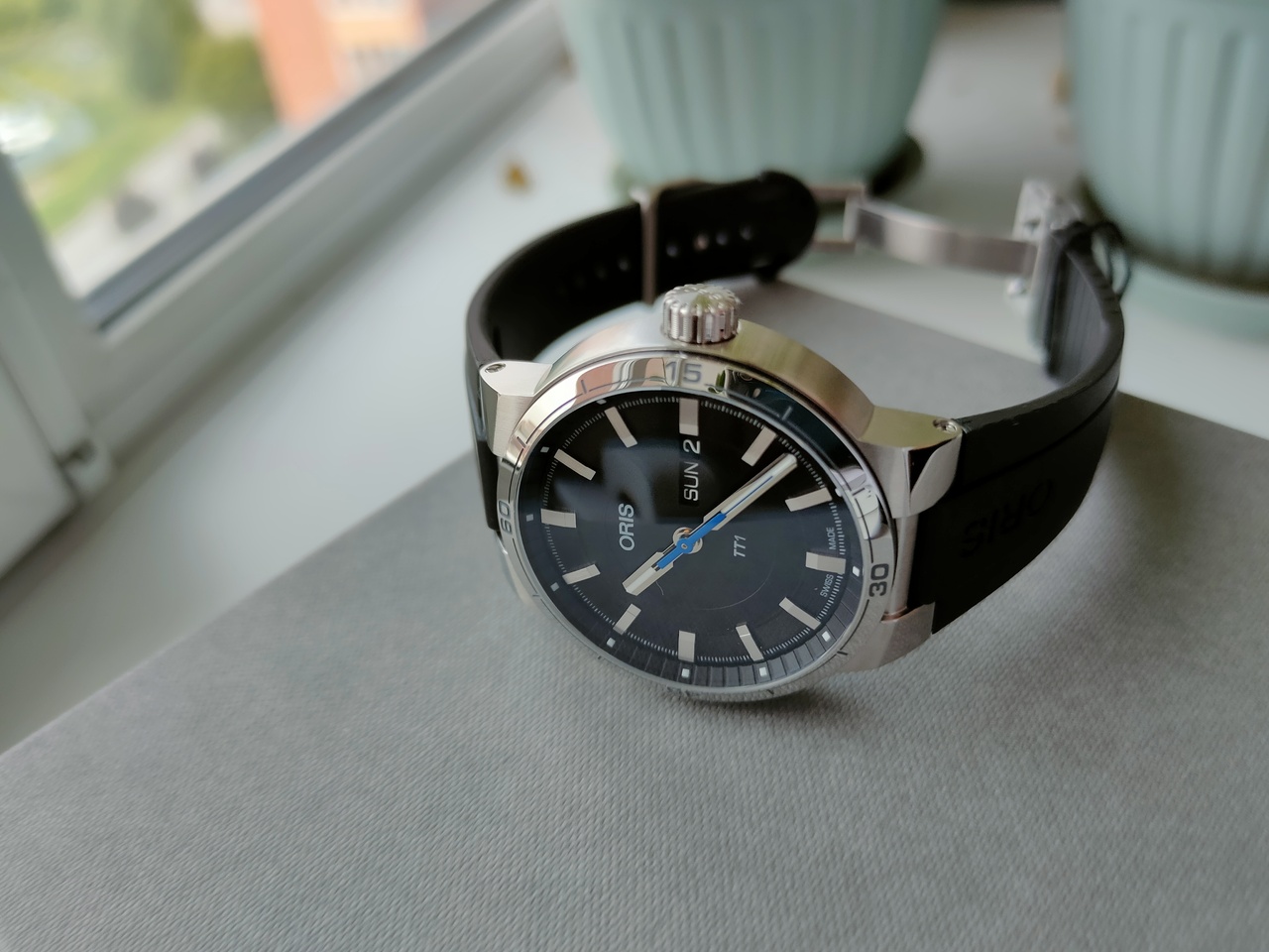 Механизм: швейцарский Oris 735, разработка Oris на базе SW 220-1, автоподзавод, запас хода 38 часов