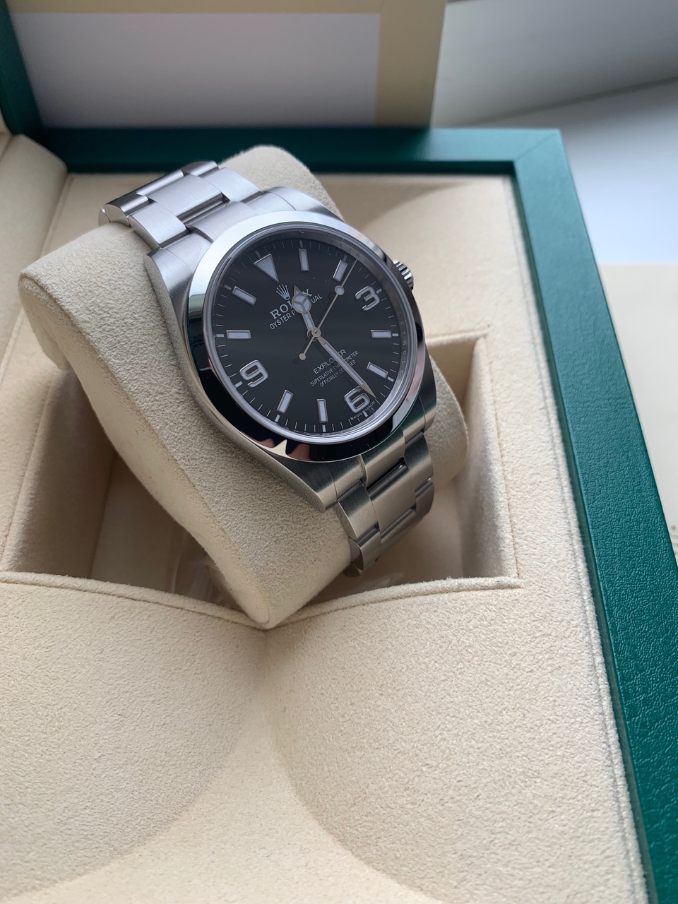 Rolex Explorer - модель впервые увидевшая свет в далеком 1953 году, появившаяся в честь покорения Эвереста сэром Эдмундом Хиллари. Как и другие знаковые модели Ролекс, дизайн Исследователя не претерпевал особых изменений на протяжений десятилетий. Explorer - одна из самых универсальных моделей в линейке Ролекс, тк одинаково уместна будет как с костюмом, так и с шортами. В ней нет того блеска и вычурности, присущих другим моделям Ролекс. Экспло не кричат за несколько метров, что у вас за запястье Ролекс, но наряду с этим, это знаковая модель с богатой историей, отличным механизмом и великолепной отделкой. Пожалуй, больше часы для себя, чем для других. Могут быть прекрасным дополнением любой коллекции, а могут быть единственными часами, так как справятся с любыми задачами. Один из дополнительных плюсов Экспло - в их сочетаемости с разными ремнями, что, в принципе, не присуще моделям Ролекс Подтверждение тому на фото во вложении.