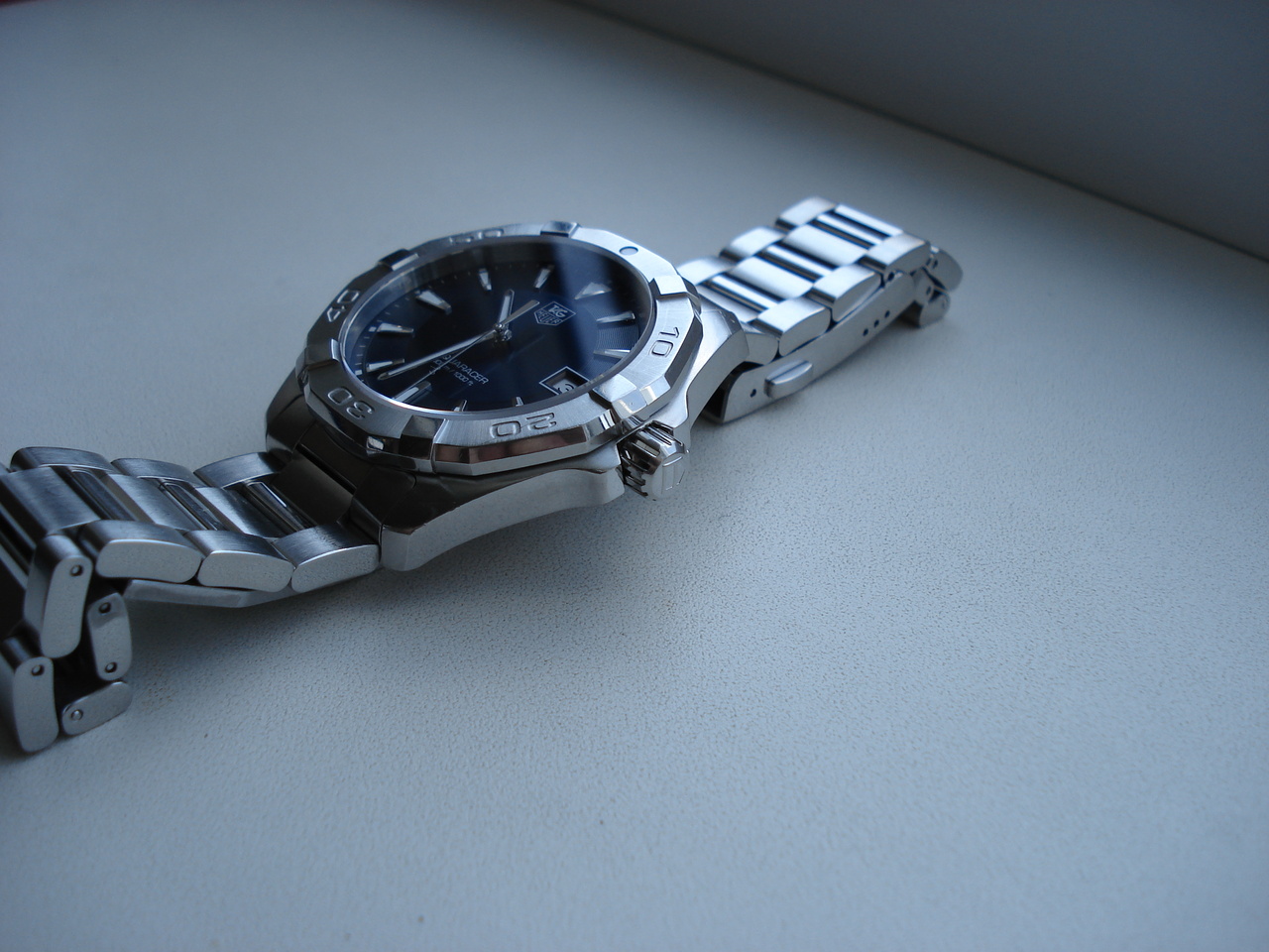 Отличная кварцевая модель от Tag Heuer с оригинальным дизайном и красивым синим циферблатом.