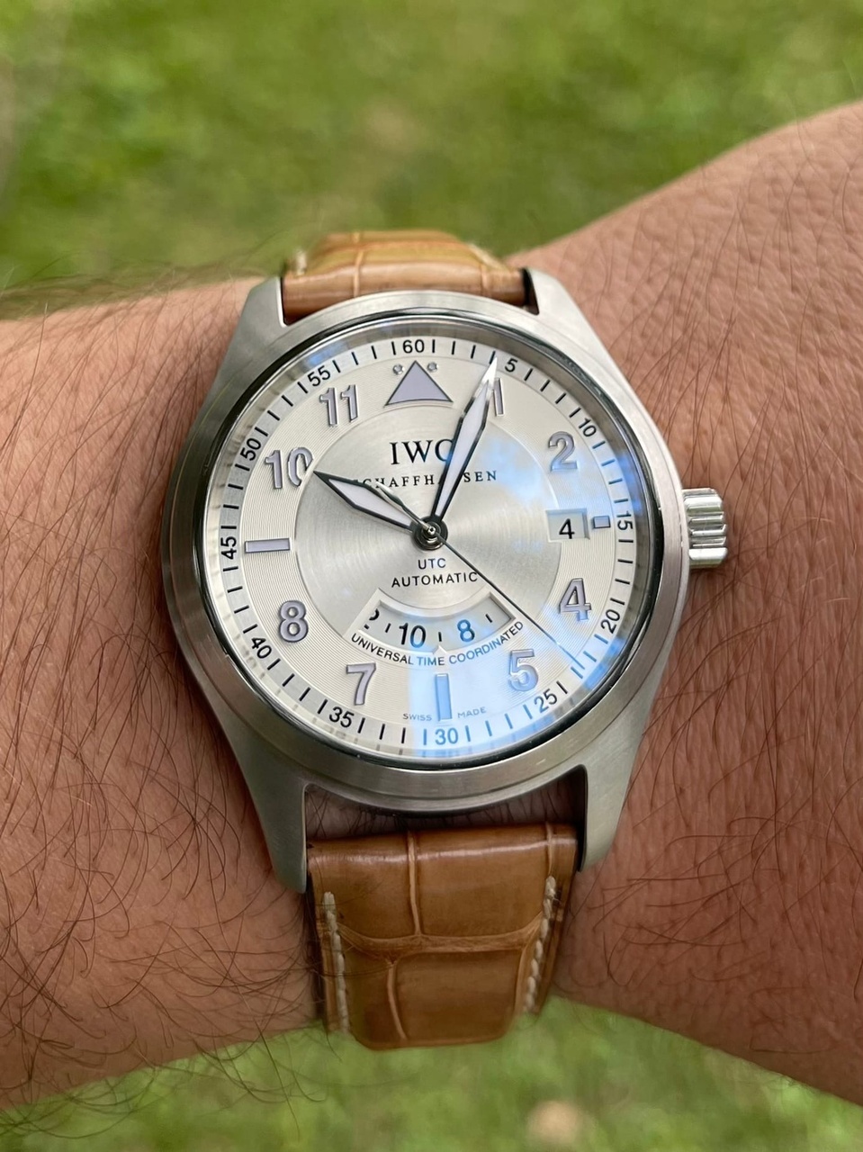 Модель Spitfire UTC станет незаменимым партнером для путешественников, привыкших часто менять континенты и часовые пояса. Ее циферблат снабжен двадцатичетырехчасовой шкалой, показывающей время по Гринвичу (GMT), которая в данном случае перенесена из верхней в нижнюю часть циферблата. И, как и у всех часов серии Pilot`s Watch, механизм надежно защищен от воздействия магнитных полей внутренним корпусом из магнитомягкого железа.
