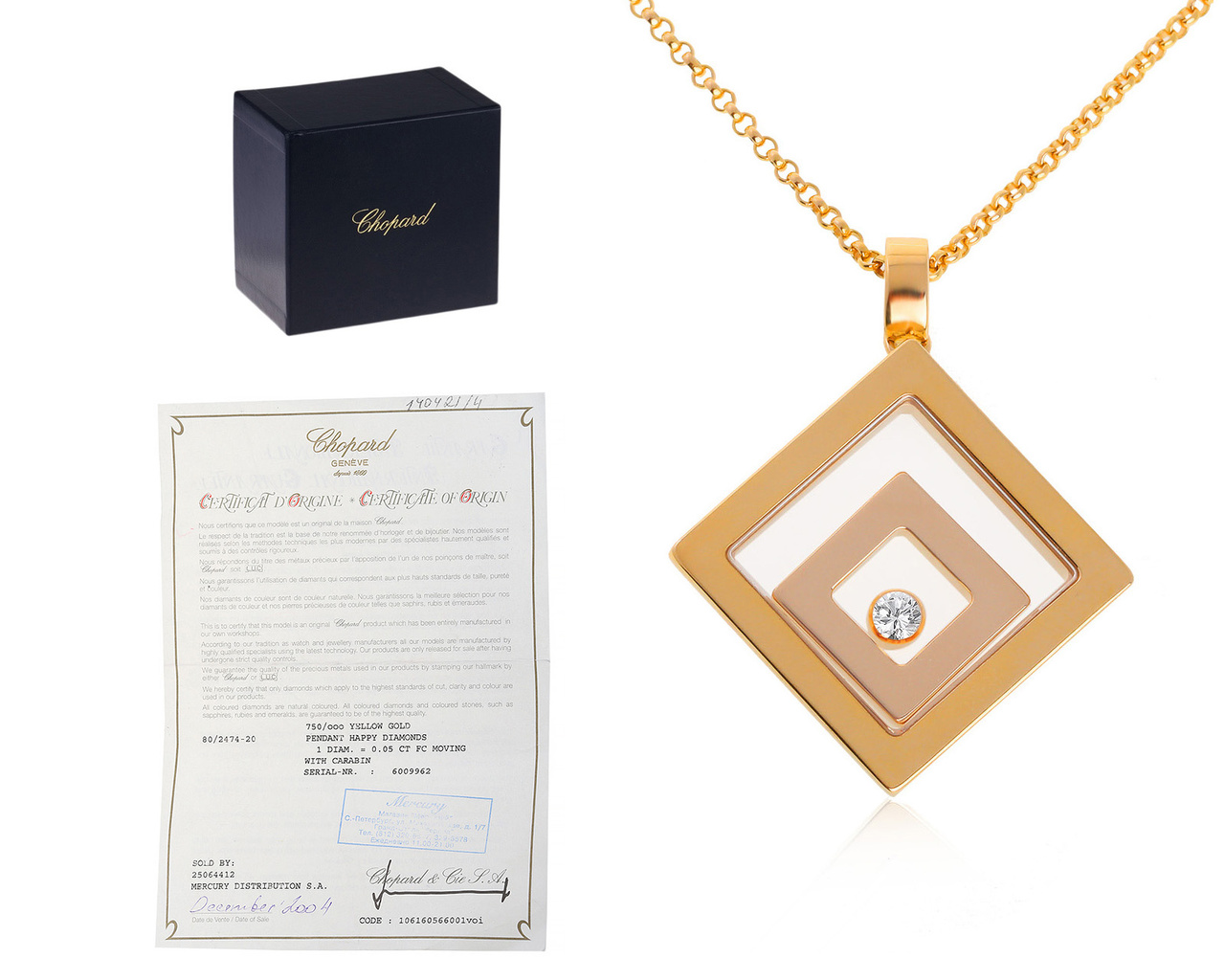 Оригинальный золотой кулон с бриллиантом 0.10ct Chopard Happy Diamond