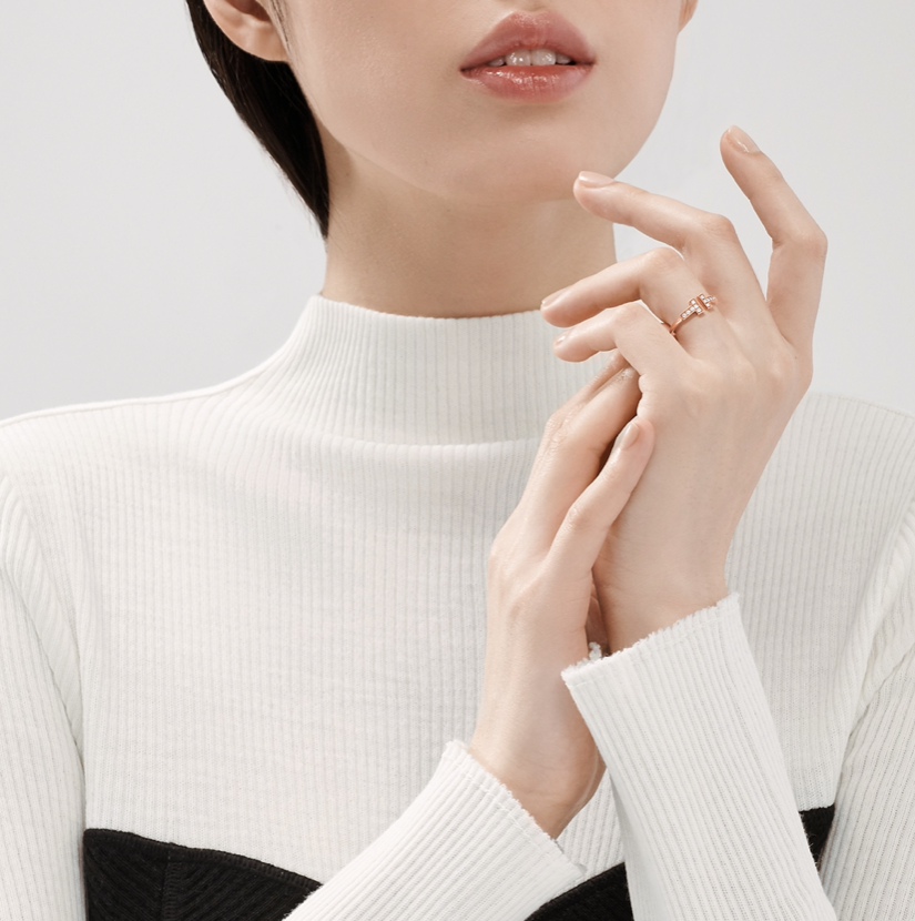 КОЛЬЦО TIFFANY T WIRE в РОЗОВОМ ЗОЛОТЕ С БРИЛЛИАНТАМИ