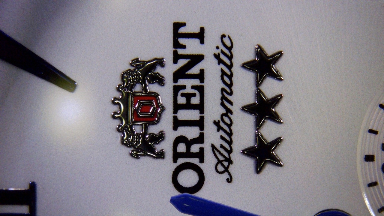 Немного макрофото. На цвет не смотрите - он искажен т.к. подсветка плоха и нет возможности выставить баланс белого. Просто детали циферблата. Качество которое Ориент предлагает за 100 баксов. Стрелки крашенные. Часовые маркеры и цифры скорее всего наклейки ... на краску (и тем более металл) не похоже.