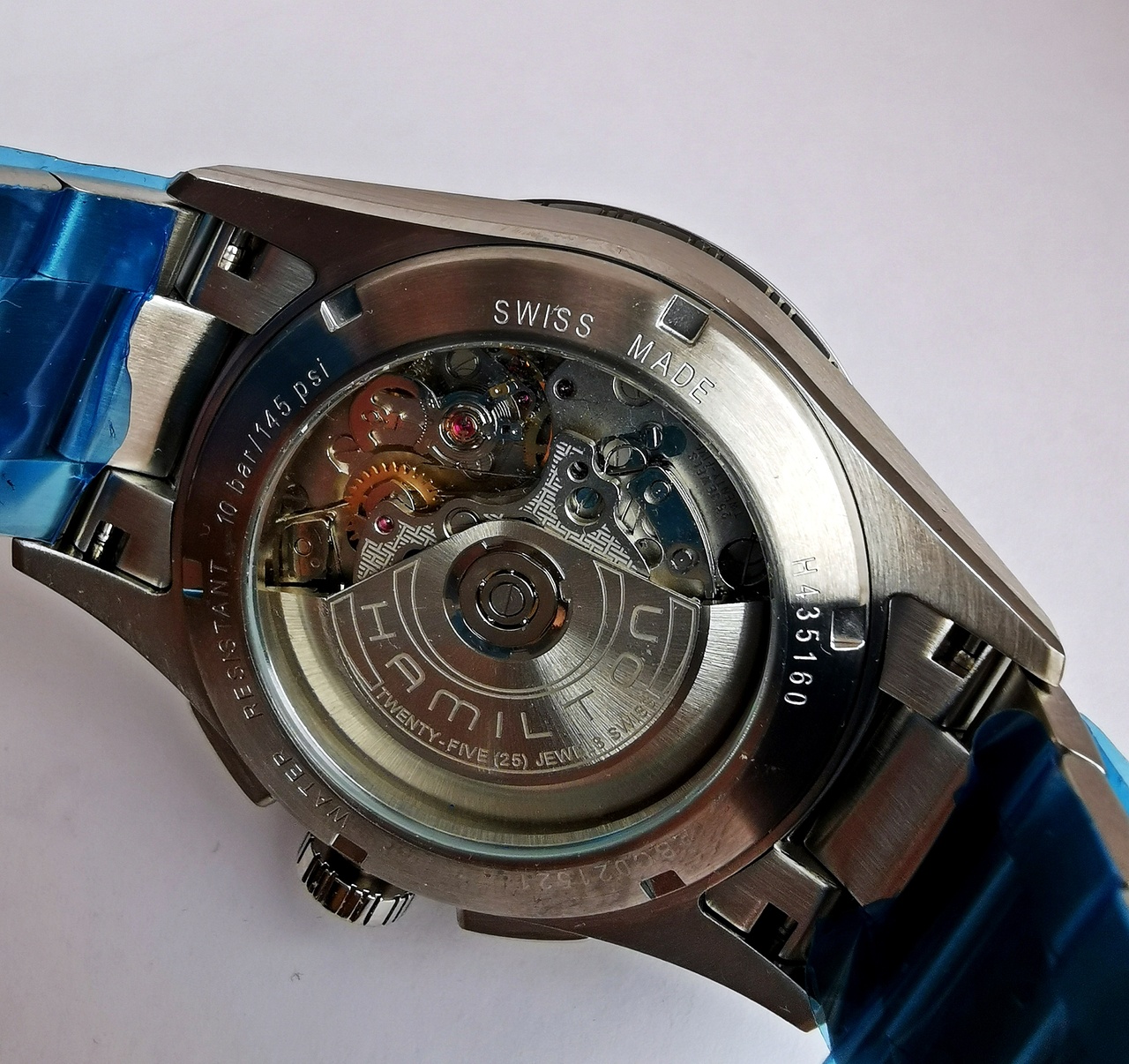 Механизм: Механический хронограф с автоподзаводом H-21 (на основе ETA 7750).