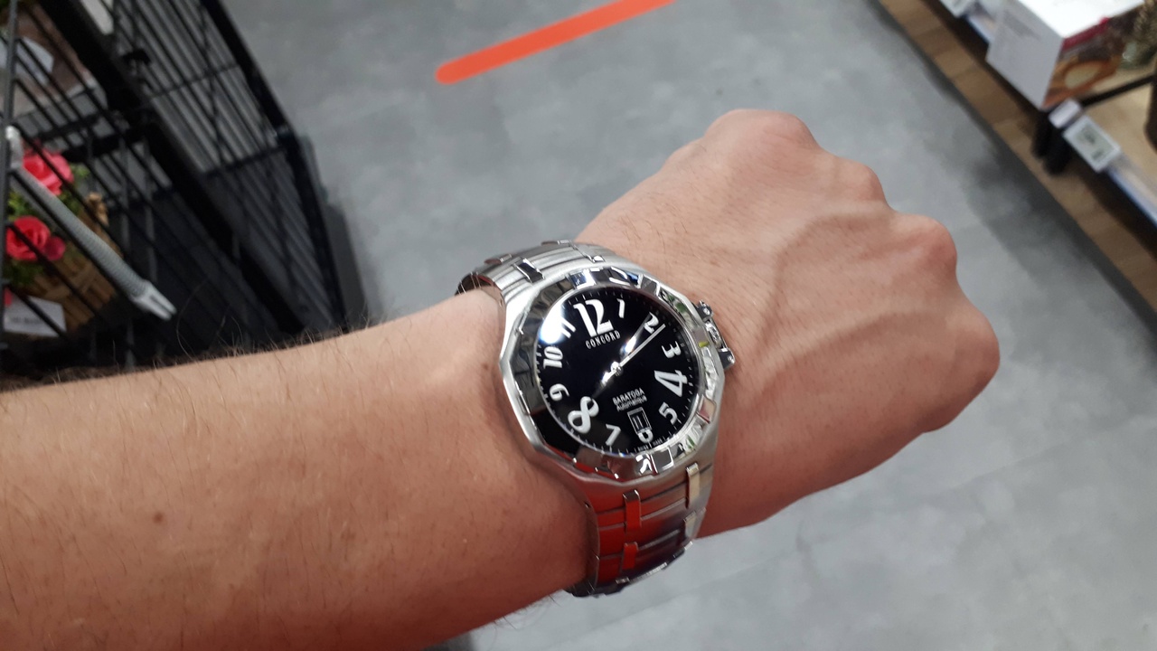 У Виктора, так зовут продавца, дома осталась почти такая же модель Concord Saratoga, только механический хронограф в размере 46, на базе ЕТА 7750, но с доп.модулем с колонным колесом.