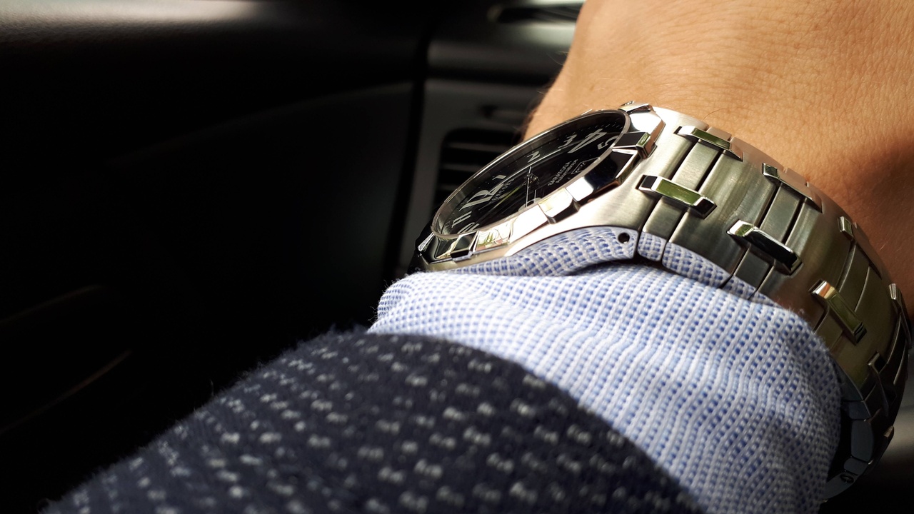 Бока корпуса, сам безель и рёбра браслета имеют так называемую "чёрную полировку", которая у японцев называется полировка по технике Зараццу.