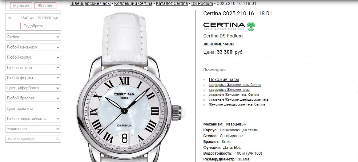 В продаже отличный женский кварц от уважаемого производителя. Идеальное соотношение цены и качества. Перламутровый цифер с римскими цифрами, большое окно даты, кабошон в заводной головке, классный ремешок с клипсой раскрытия, дорогой кварцевый калибр, фирменная технология DS (Double Security/Двойная Надежность): особая система противоударной и антивибрационной защиты механизма, повышенная надежность от влажности. В живую часы выглядят гораздо богаче и интереснее чем на фото. По характеристикам, на мой скромный взгляд, намного интереснее японских часов в данном ценовом диапазоне....