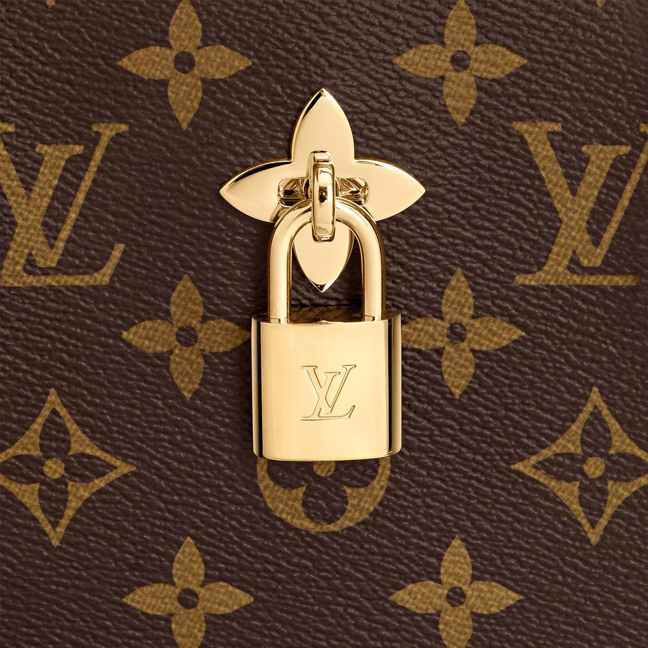 "Идеальная (и идеально женственная) деловая модель – функциональная плоская сумка, украшенная узнаваемым замком в форме цветка Monogram из блестящего золотистого металла. Ручки и съемный ремень из гладкой кожи позволяют носить сумку различными способами. Продуманная внутренняя конструкция достаточно вместительна для папок и ноутбука."