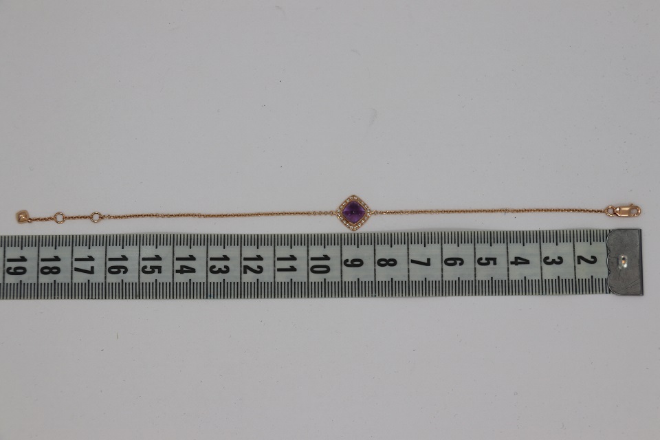 Неспешно продается новый женский золотой браслет из 18к розового золота, с бриллиантами и аметистовым кабошоном