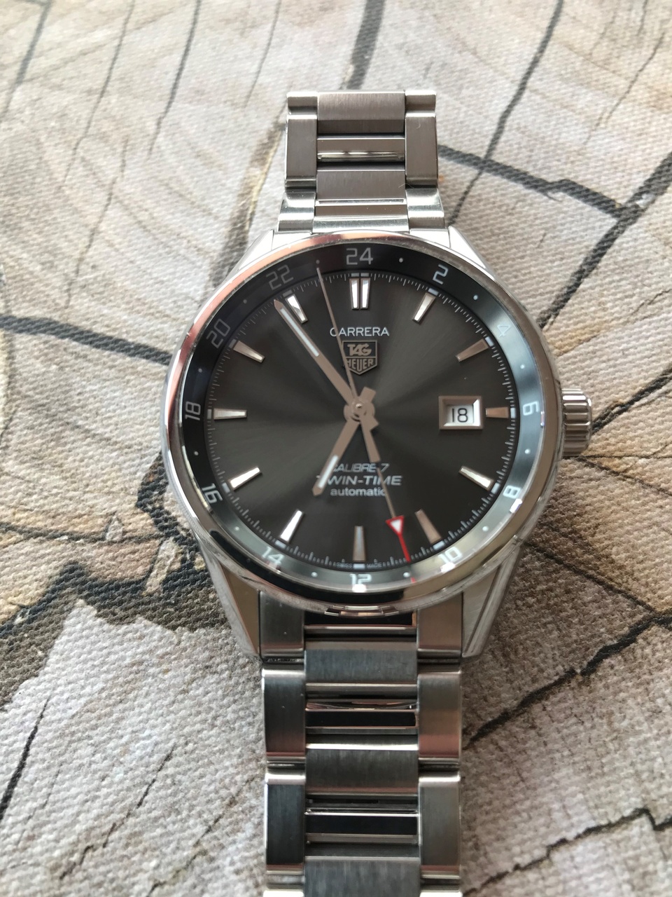 В наличии роскошные Tag Heuer Carrera Twin Time, модель: WAR2012.BA0723. Состояние отличное. Полный комплект: часы, внешняя коробка, шкатулка, инструкция, гарантийная карта, чек, доп. звенья. Часы куплены в бутике Москвы, осенью 2015г.