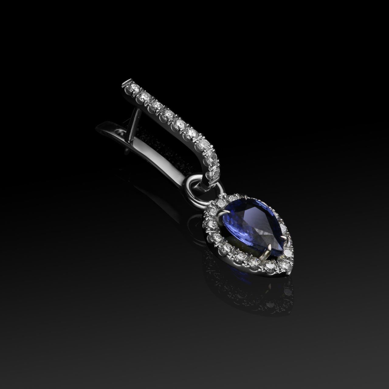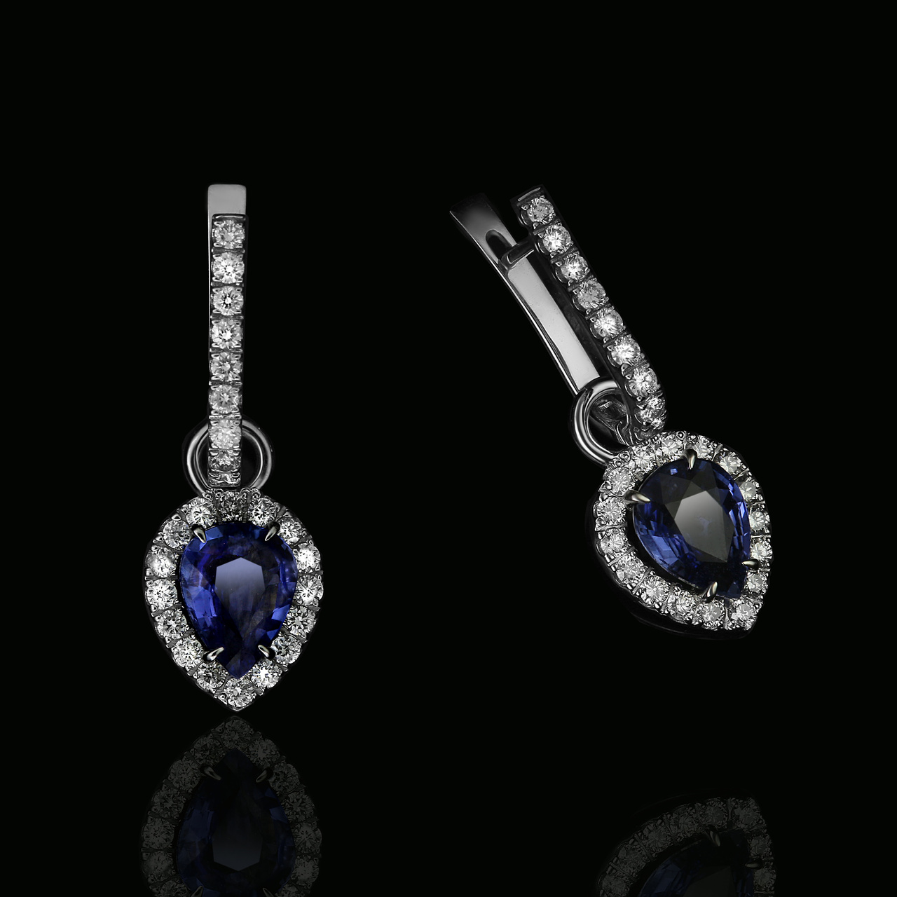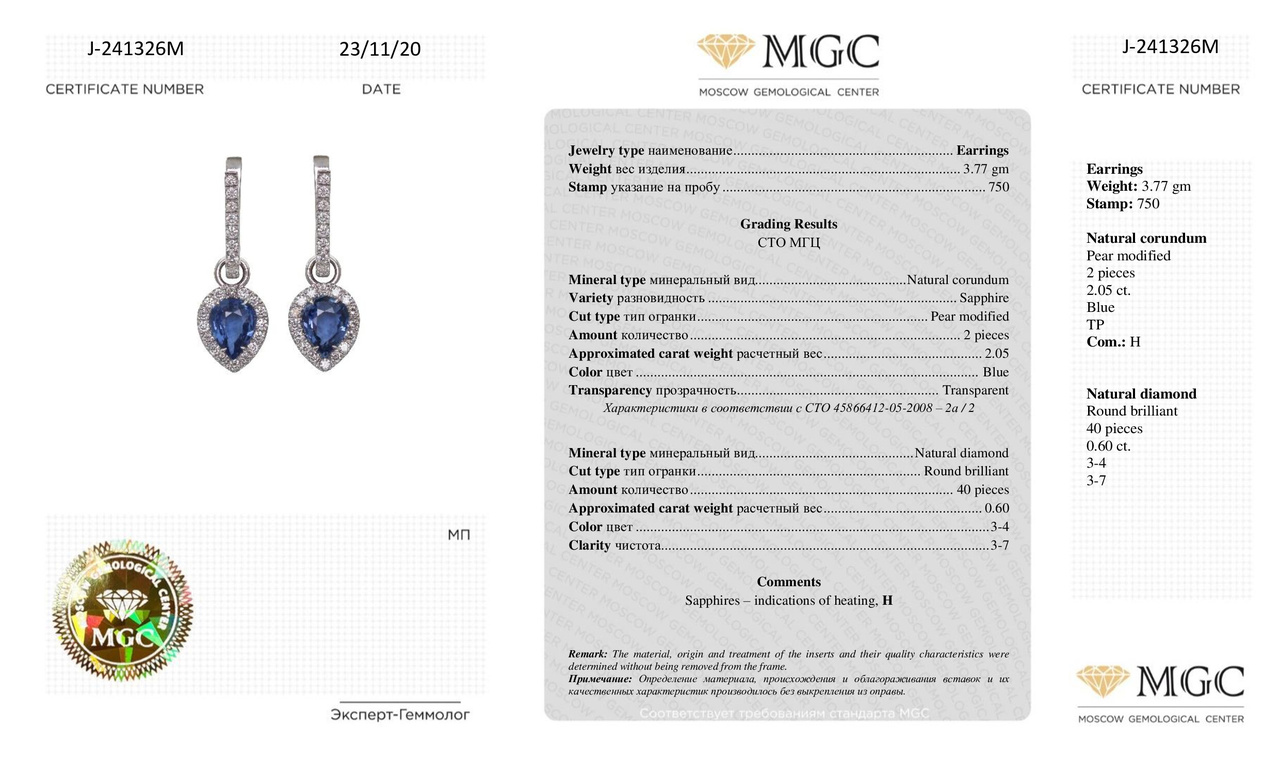 Серьги из белого золота с сапфирами 2,05 карат и бриллиантами 0,6 карат (сертификат МГЦ)