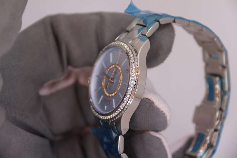 Безель (67) и серо-голубой санберст циферблат (34) украшены 101 top wesselton бриллиантом.