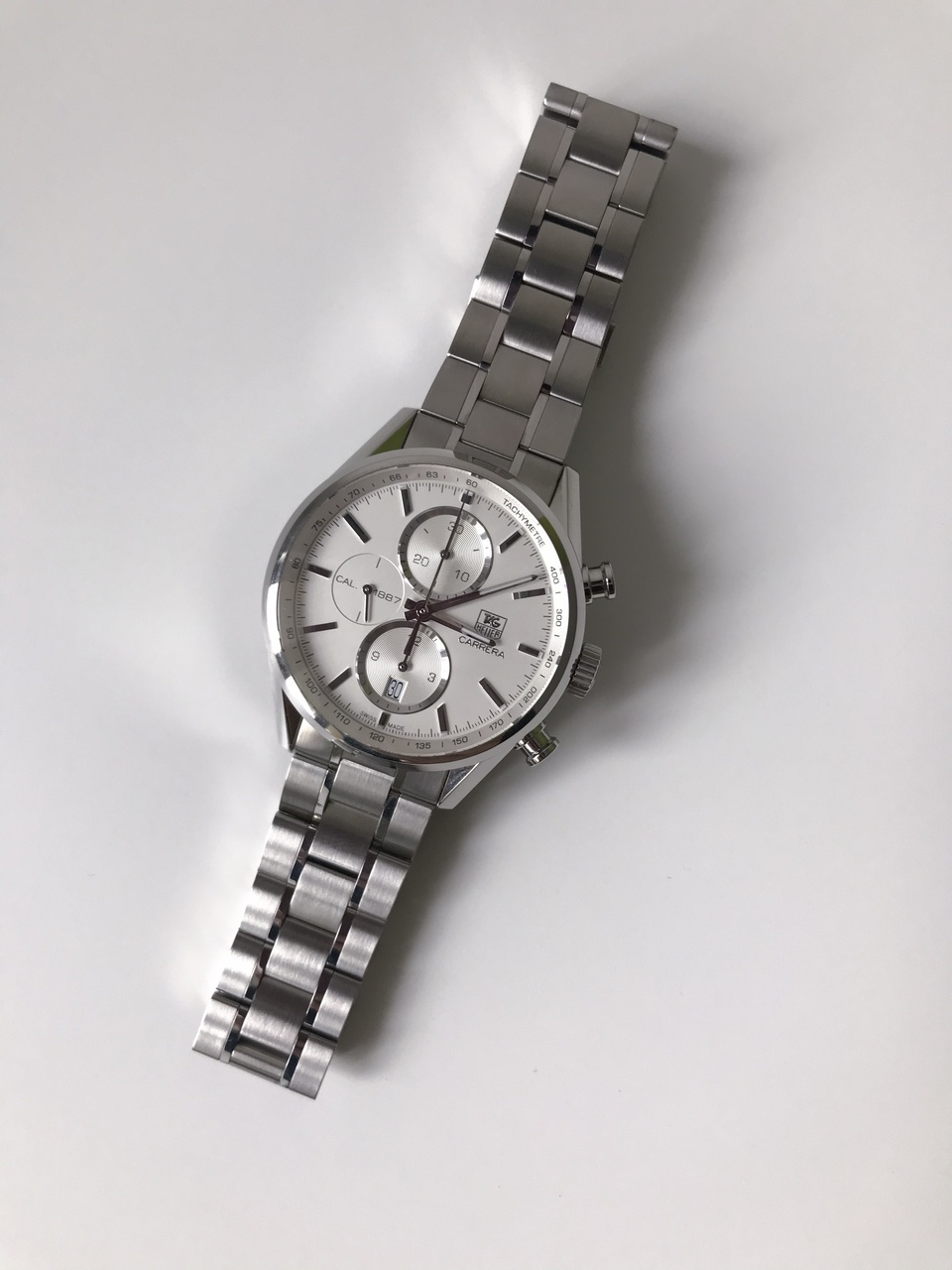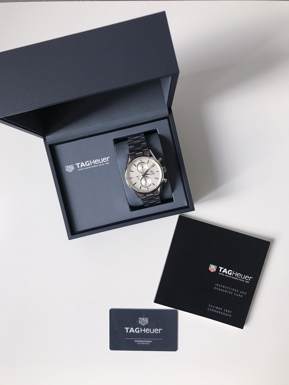 Продаю шикарный хронограф от швейцарского бренда Tag Heuer. Хронографы серии Каррера воплощают в себе большое спортивное наследие марки. Сдержанный дизайн корпуса, отсутствие широкого безеля и серебристый циферблат позволяют сочетать часы с более классическим стилем в одежде. При этом полированная окантовка счетчиков на циферблате добавит лоска, а зеркальные метки и стрелки обеспечат читаемость. Благодаря небольшому диаметру 41мм часы отлично сядут практически на любое запястье. Прозрачная задняя крышка позволяет видеть красиво отделанный механизм Calibre 1887 и оценить работу его деталей. Внушительный стальной браслет хорошо сочетается с корпусом и одновременно снабжен достаточно компактной застежкой, которая не будет мешать при носке. Надежность фиксации обеспечена замком с двумя боковыми кнопками, которыми удобно пользоваться. Водозащита в 100 метров оптимальна для повседневного использования часов.