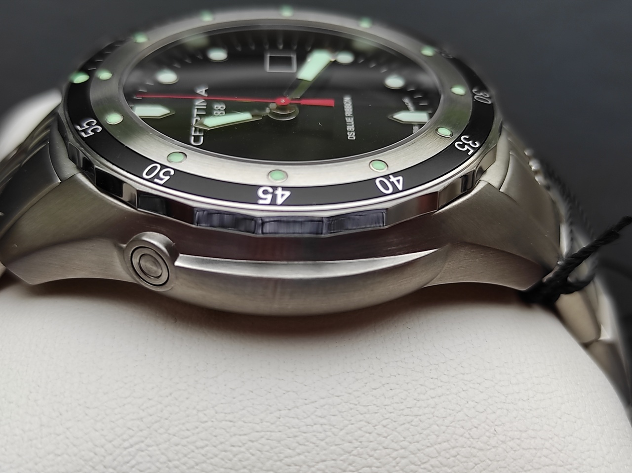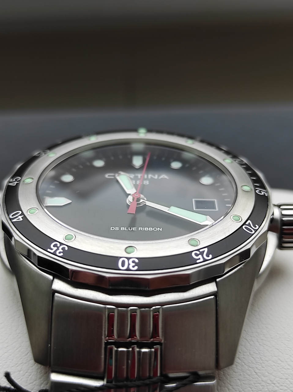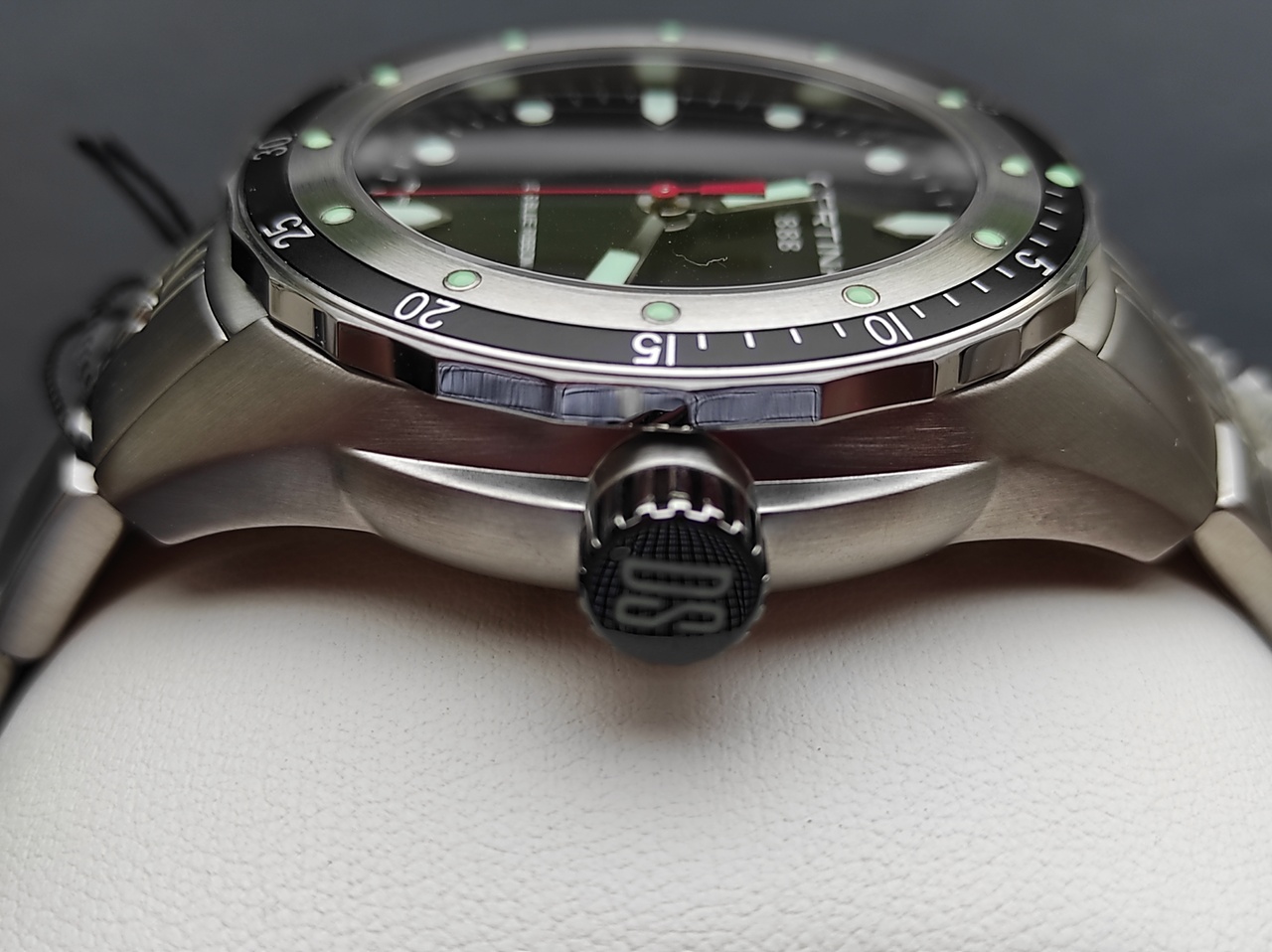 DS Blue Ribbon. Стальной безель вращается в одном направлении. Завинчивающаяся задняя крышка. Завинчивающаяся заводная головка.
