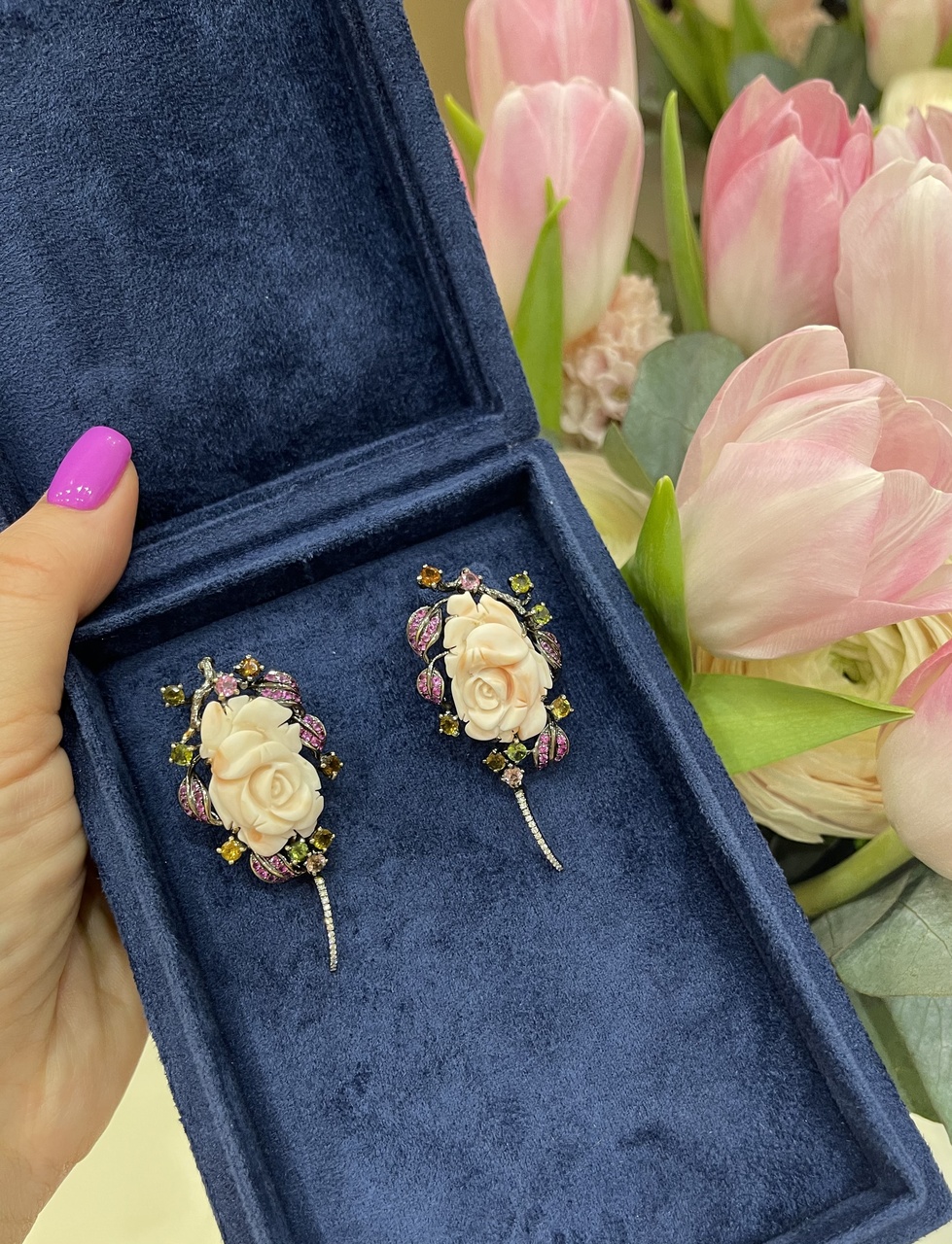 ШИКАРНЫЕ СЕРЬГИ С КОРАЛЛАМИ, БРИЛЛИАНТАМИ, ТОРГ/ОТПРАВКА