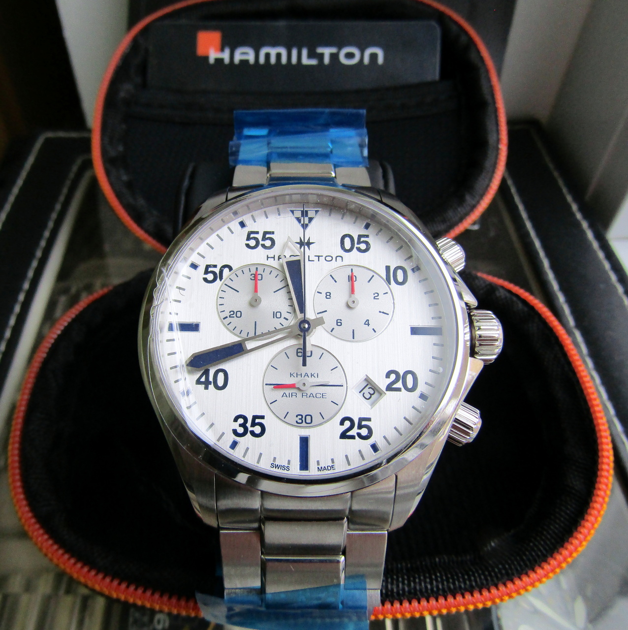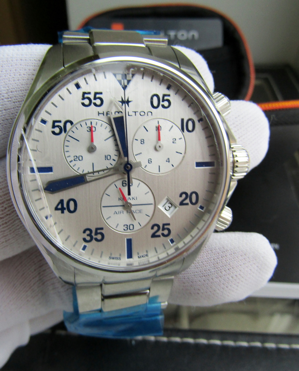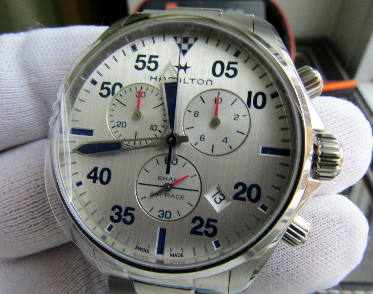 Спортивный кварцевый хронограф в корпусе из нержавеющей стали диаметром 44 мм отражает почетную миссию Hamilton в качестве официального хронометриста Red Bull Air Race 2018. Идеальное сочетание авиационного стиля и швейцарской точности.