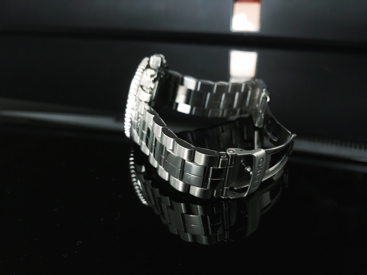 Часы были куплены в ноябре, эксплуатировались аккуратно, микроцарапины присутствуют только в нижней части браслета. Царапин на стекле и безеле - нет. Часы имеют солидный вес и ощущаются монолитно. Заводная головка и кнопки хронографа - завинчиваются в корпус. Нареканий по работе часов нет. При необходимости могу предоставить дополнительные фото и видео часов. Возможна отправка в любую точку России.