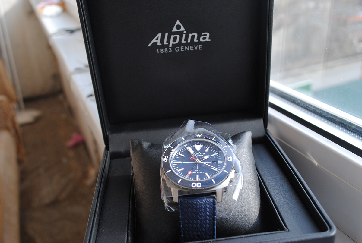Дайвер ALPINA SEASTRONG DIVER Quartz GMT//синий циферблат//на синем каучуке
