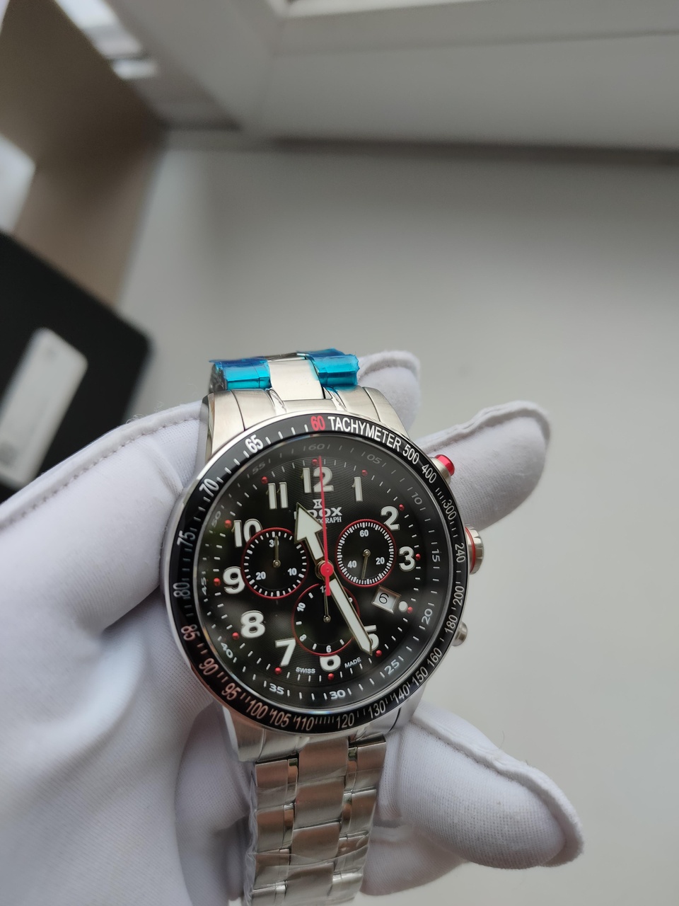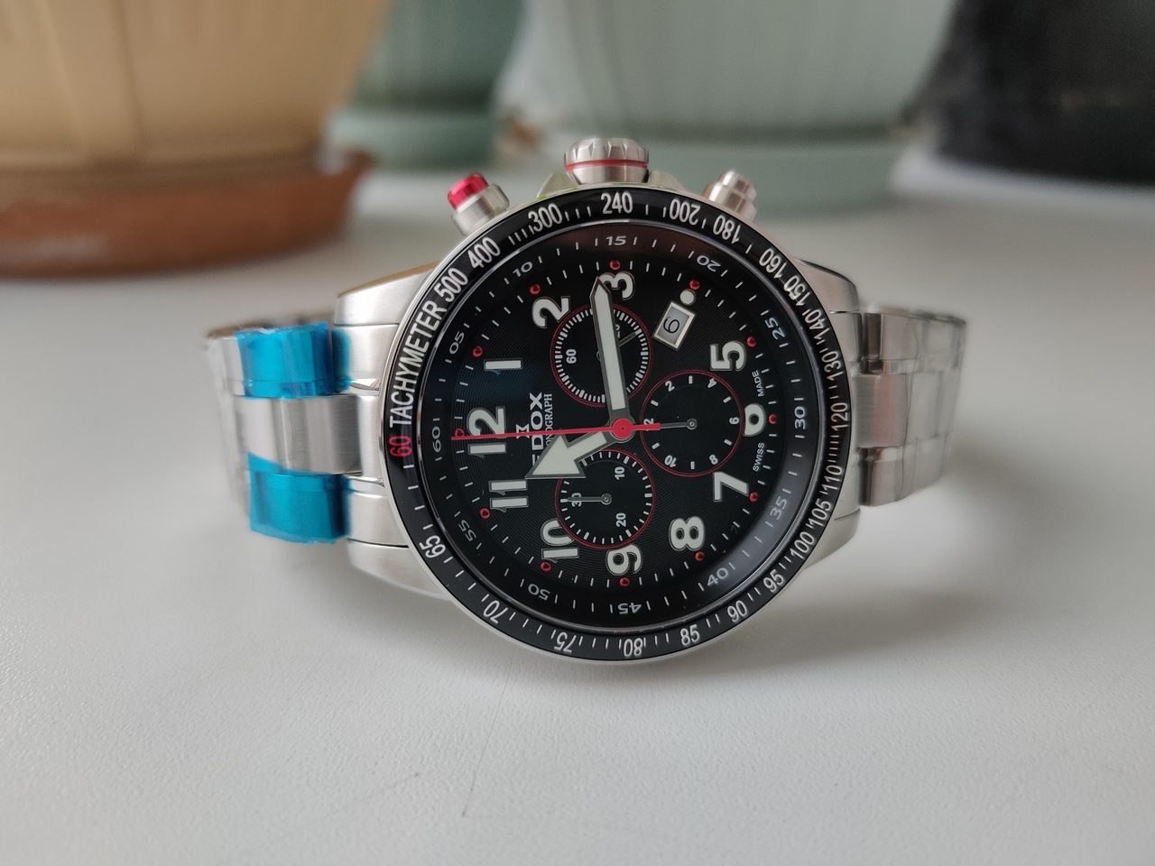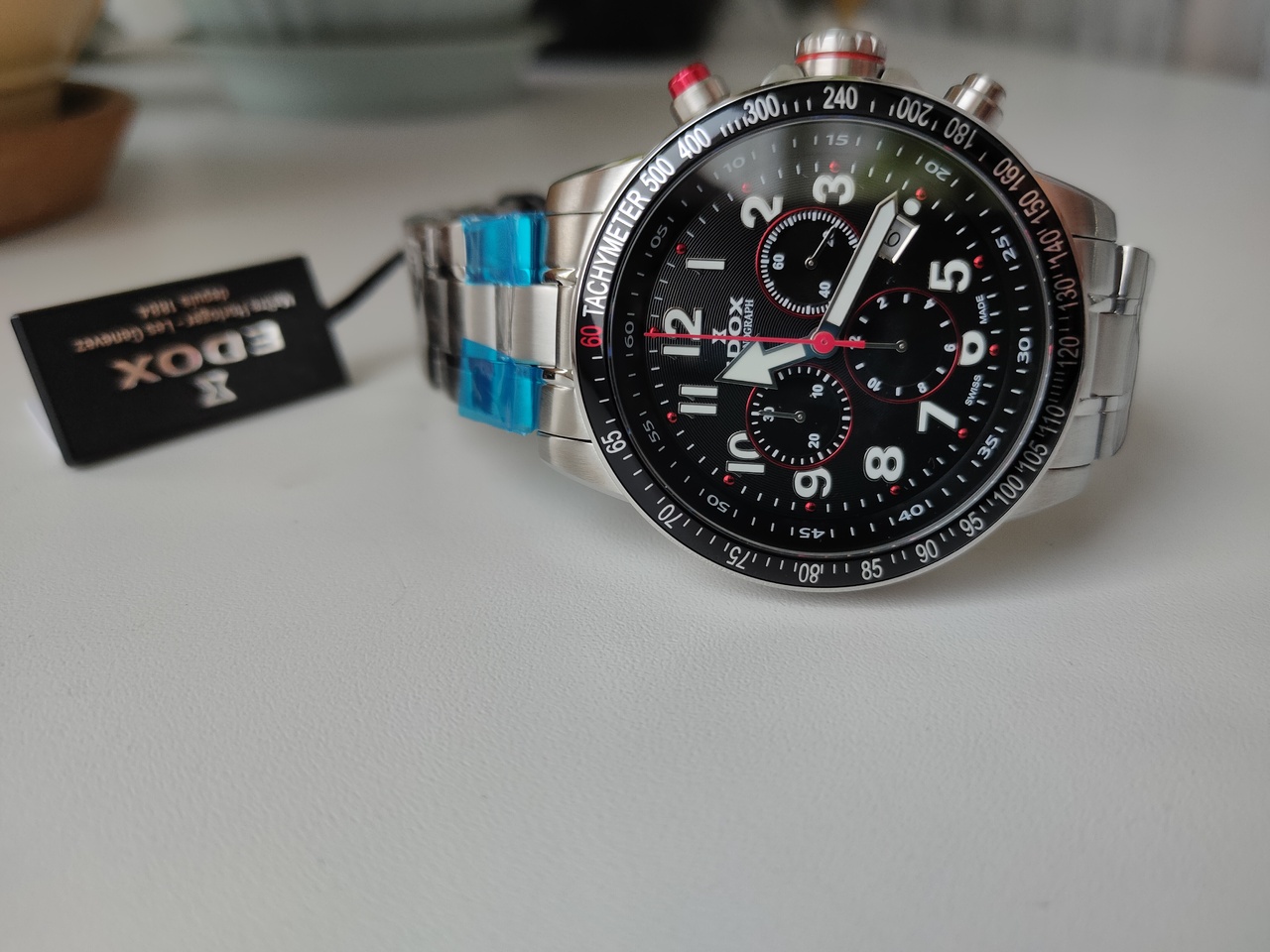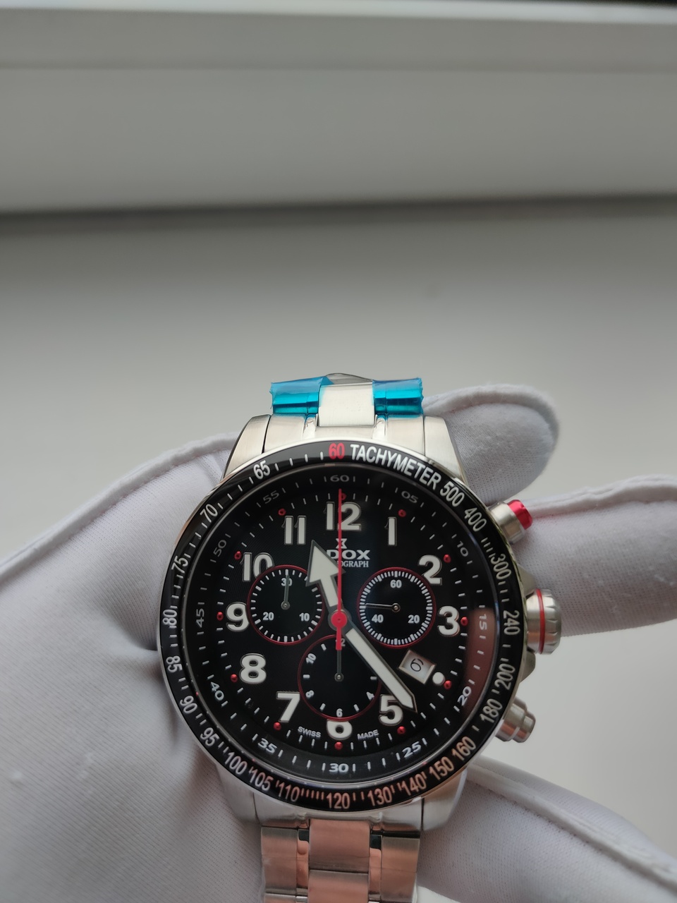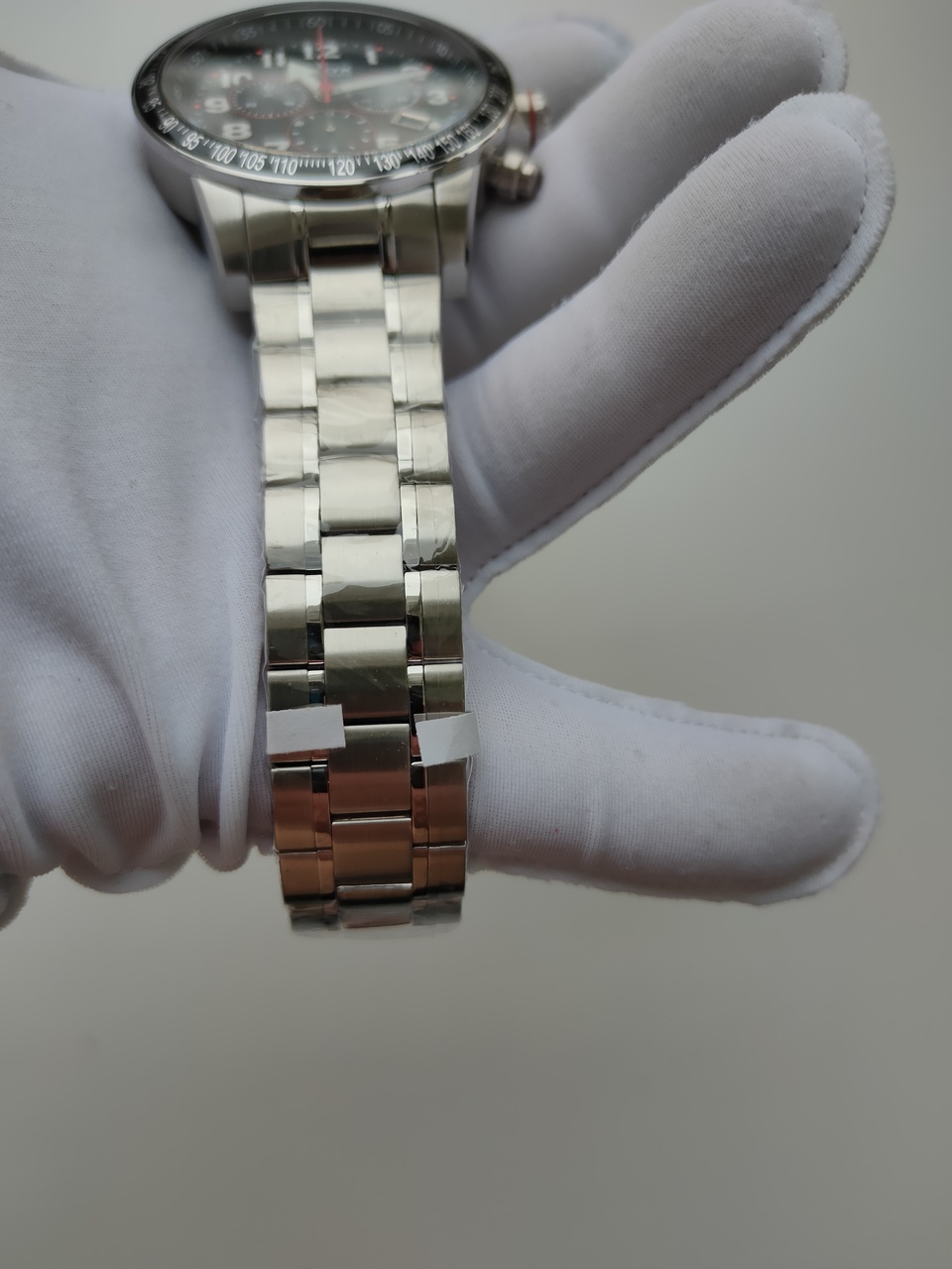 В продаже отличный крупный спорт-хронограф от уважаемого производителя. Очень интересная и качественно исполненная модель с вниманием к деталям. Цифер с накладными элементами и люмом на цифрах и стрелках, отличный плотный литой браслет с сочетанием полировки и практичного сатина. В целом имеем крепкий повседневник фактически без слабых сторон.