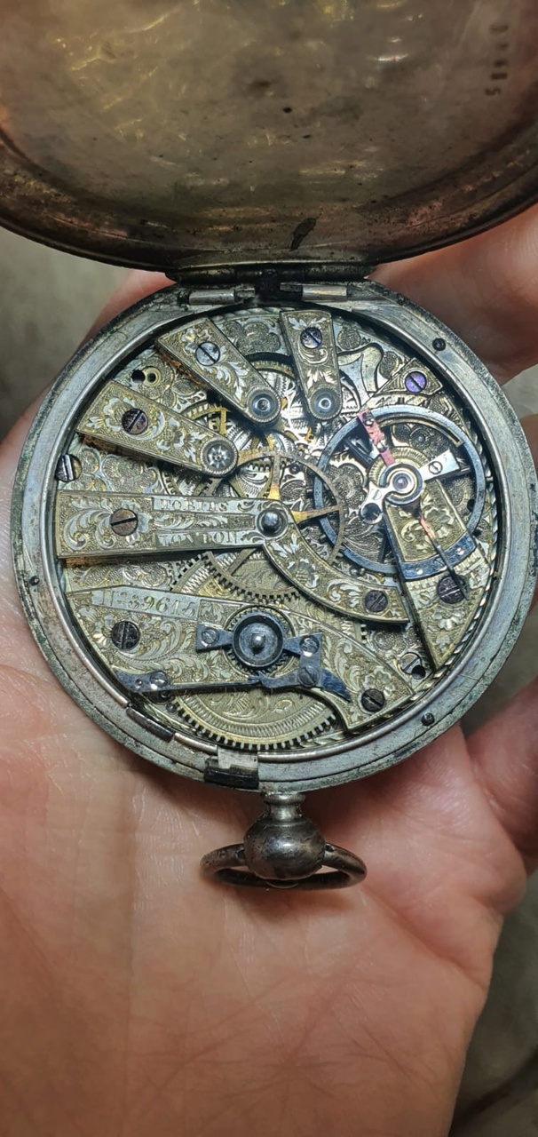 Старинные карманные часы the Baltic. Mеханизм с гравировкой.