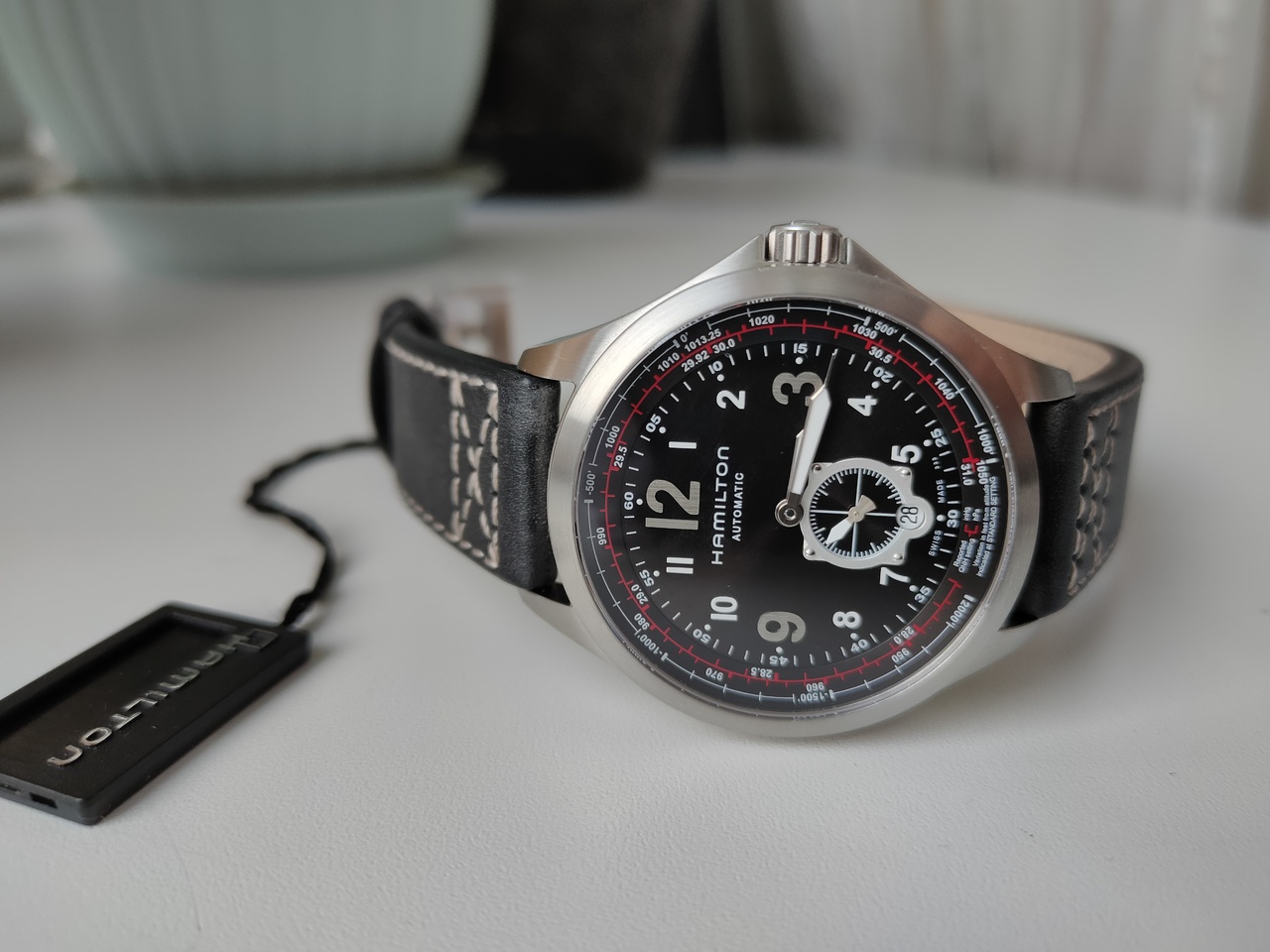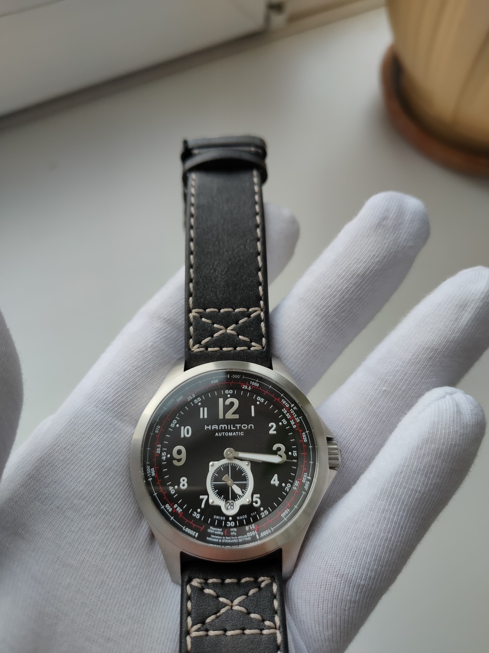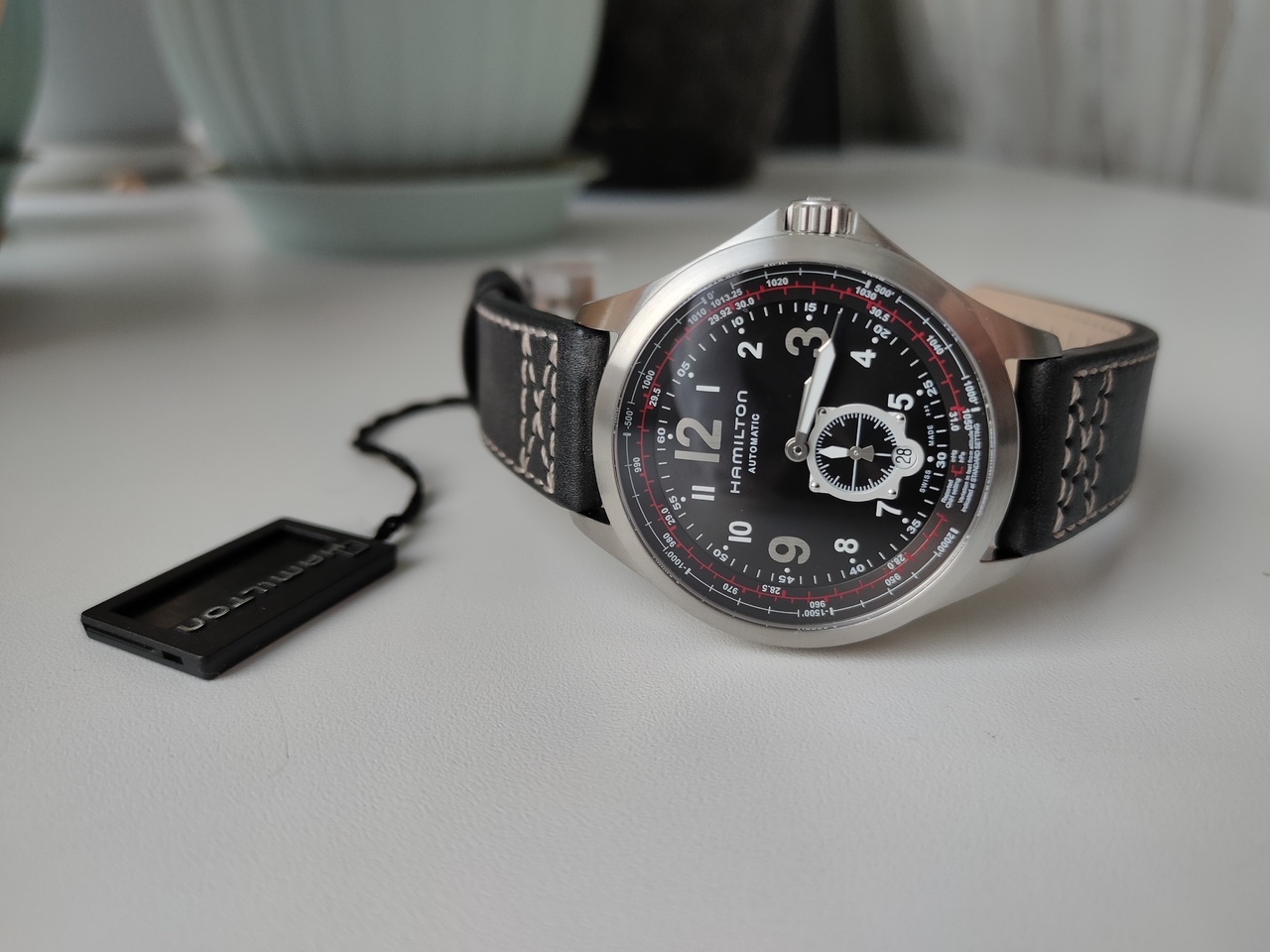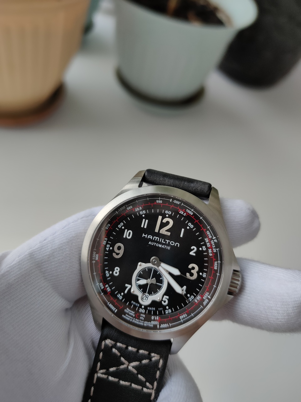В продаже редкий пилот в неизбитом дизайне от уважаемого производителя. Модель, над которой дизайнеры потрудились на славу. В моменты скуки и лени, сняв их с руки, можно долго изучать все фишки и полезности дизайна данной модели. Чего только стоят шкала измерения давления и высоты, прозрачная задняя крышка с металлической полосой по центру с выгравированным на ней авиационным алфавитом и малая секунда, оформленная в виде приборной доски самолета