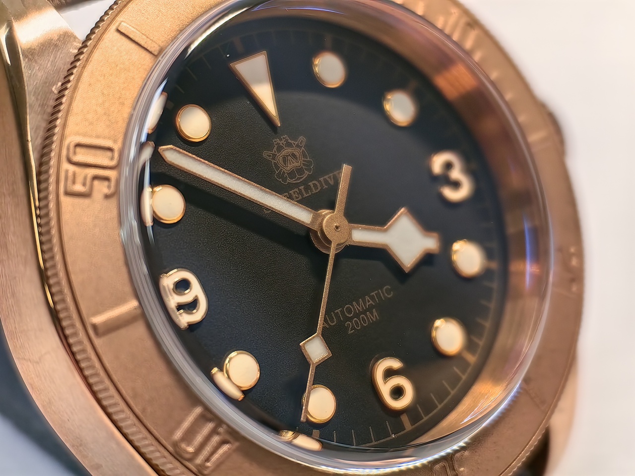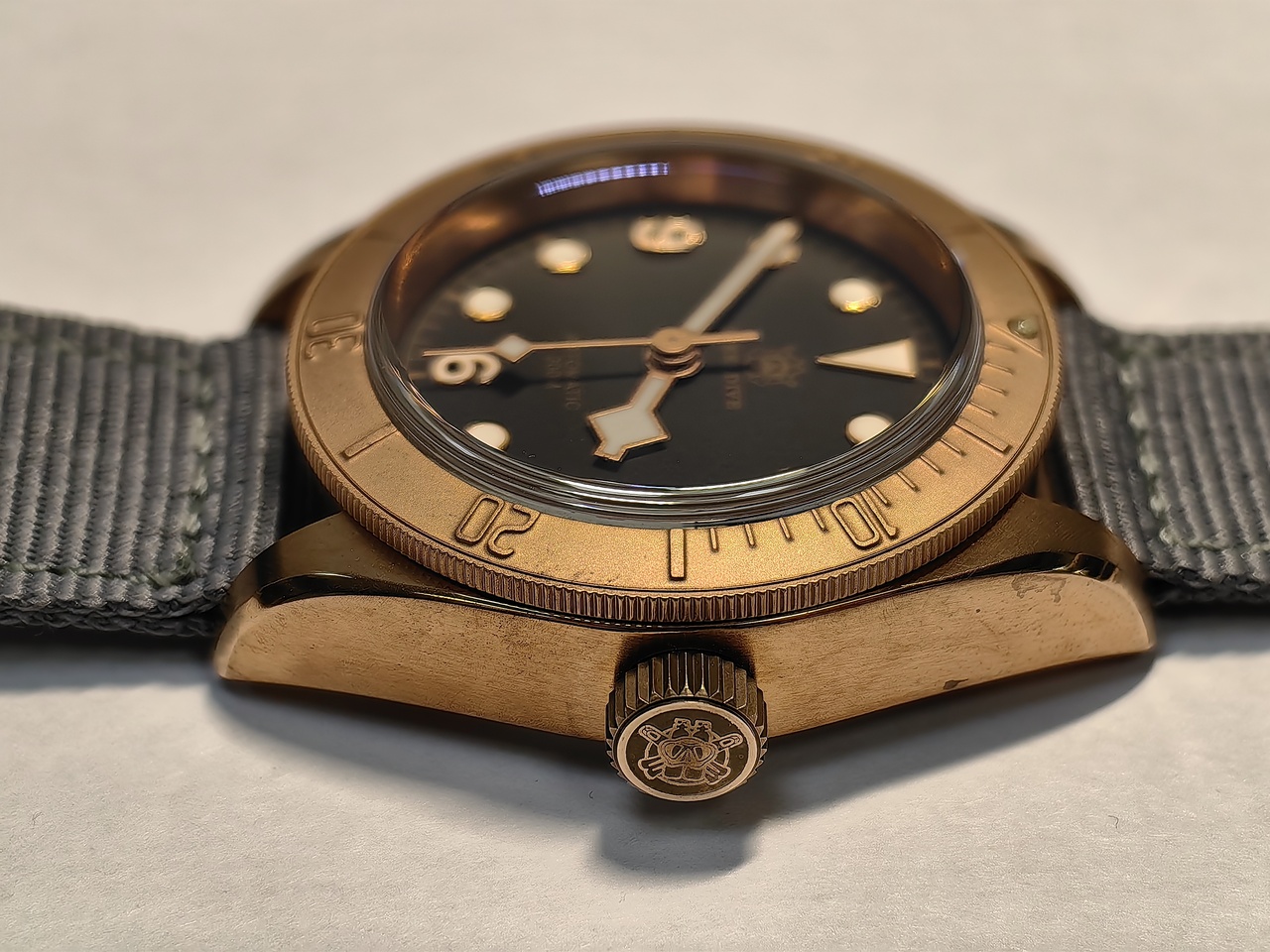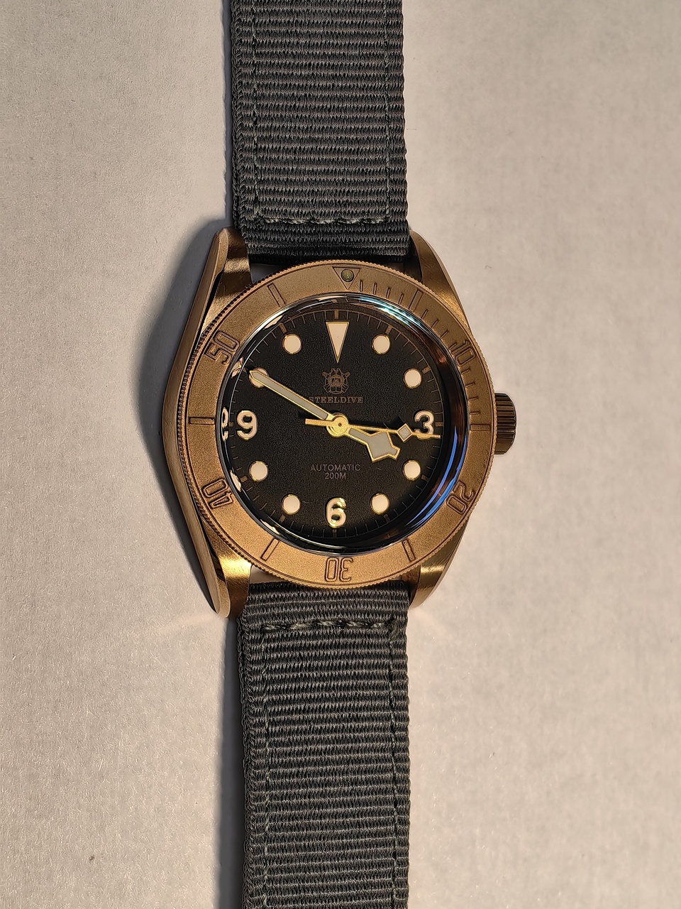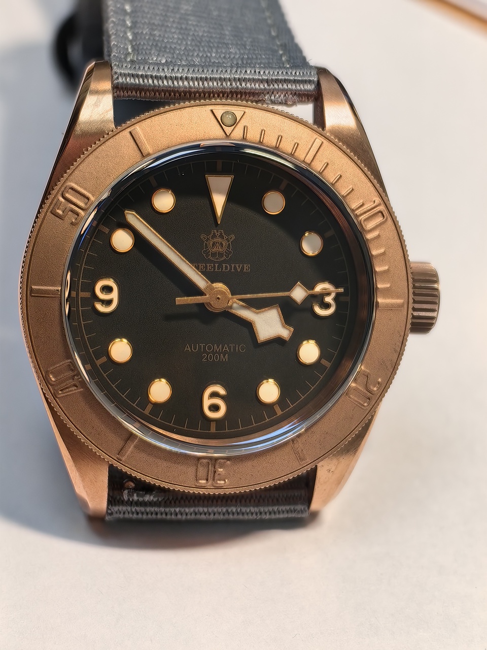 Эти часы уже долго лежали в моей корзине на Алиэкспрессе, и были в числе покупок "на потом" как завершающие череду бронзовых хомажей Тюдор. Причиной откладывания покупки была вовсе не цена, а немного сомнительный внешний вид, а именно безель. В моделях от Тюдор безель цветной(коричневый, черный) - у Стилдайва он бронзовый(что неплохо), но какой-то скучный. Терзаясь сомнениями я всё таки сделал заказ, - уж лучше выяснить всё окончательно, и закрыть вопрос.