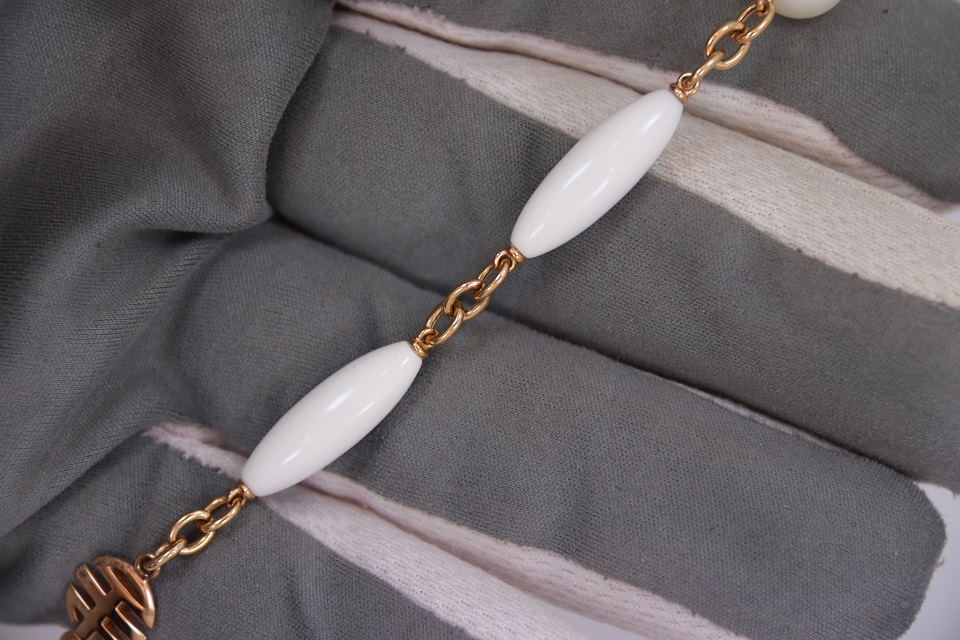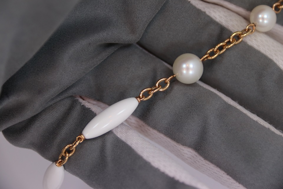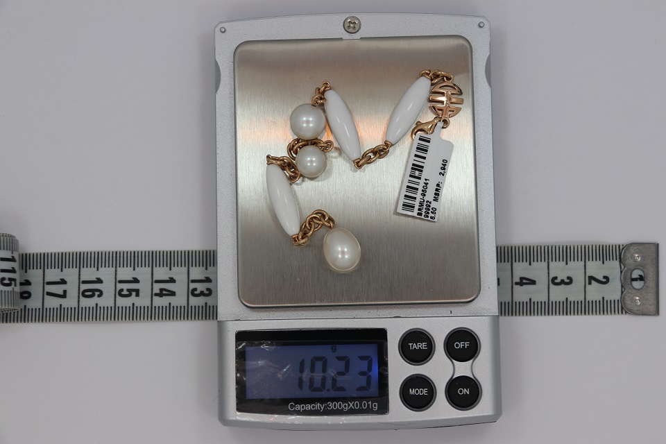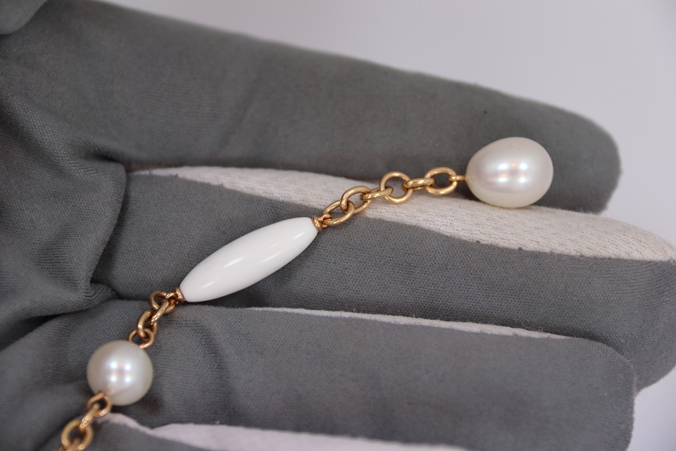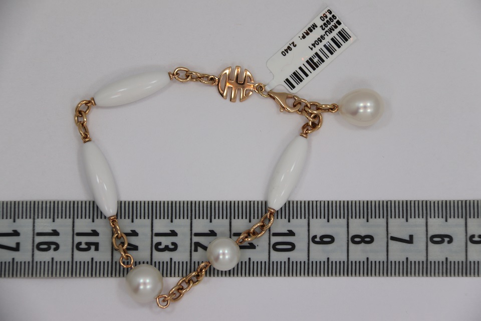 < ЗОЛОТОЙ БРАСЛЕТ > MiMi Milano 18k Gold, White Agate & Pearls * ВЕС 10.23 * ЗОЛОТО 18К / 750 * ЖЕМЧУГ * БЕЛЫЙ АГАТ * ДЛИНА В ЗАСТЕГНУТОМ ВМДЕ ~ 17,5 - 19 CМ * РИТЕЙЛ В США $2.940 * ПРОДАЖА 70.000 *