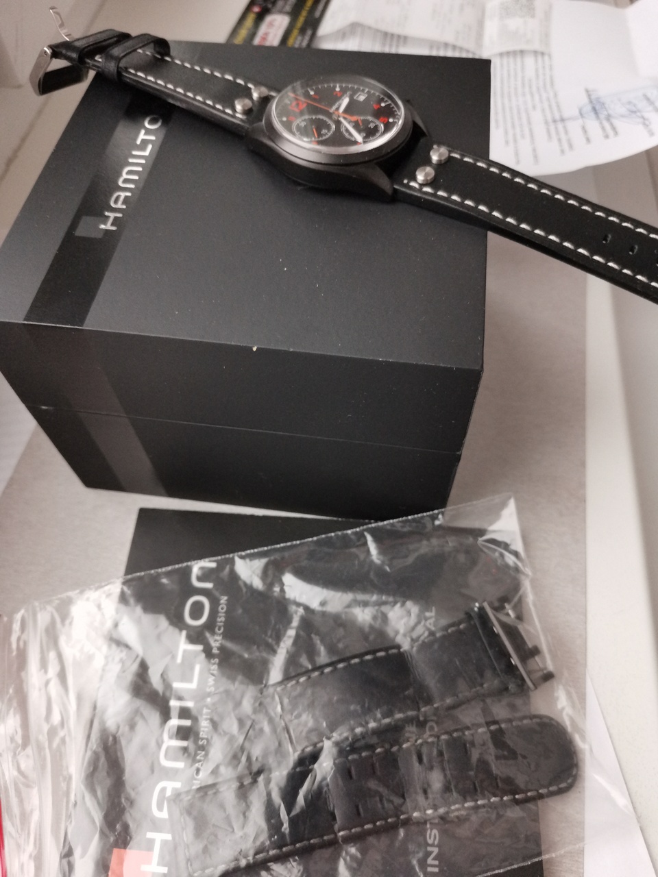 Комплект: часы, заводская коробка, инструкция, чек об оплате и установке ремня от 06.02.2022, оригинальный ремень с пряжкой.