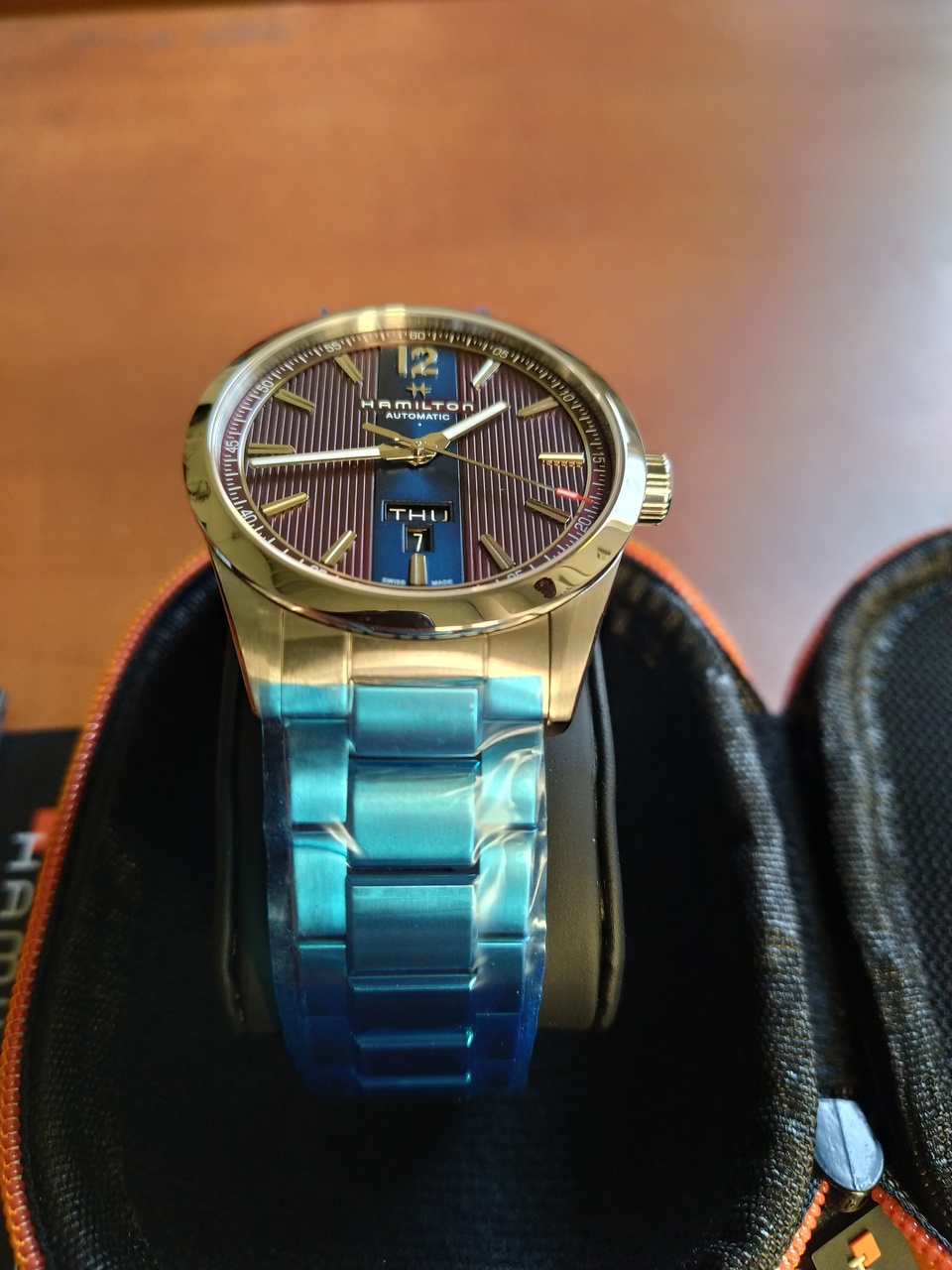 По моему мнению, серия Бродвей, является одной из топовых линеек у Хамильтон: отличный сатин по бокам, полировка боковых граней, декорированный механизм, шикарный браслет, наклыдные стальные метки и логотип, отличный внутренний антиблик.