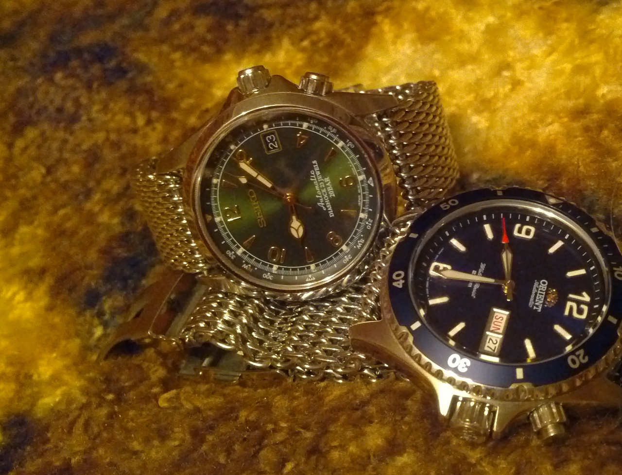 Для часов Seiko Green Alpinist sarb017 (Сейко Зелёный Альпинист) и (Ориент) Orient EZ09005W браслет № 2 отлично подходит как с литыми прямыми эндлинками, так и с округлыми оконцовками - только чуток, самую малость подогнуть уголки (сам я не подогнул, так как вдруг кто-то браслет купит для других часов, и там подгибать ничего не надо будет).