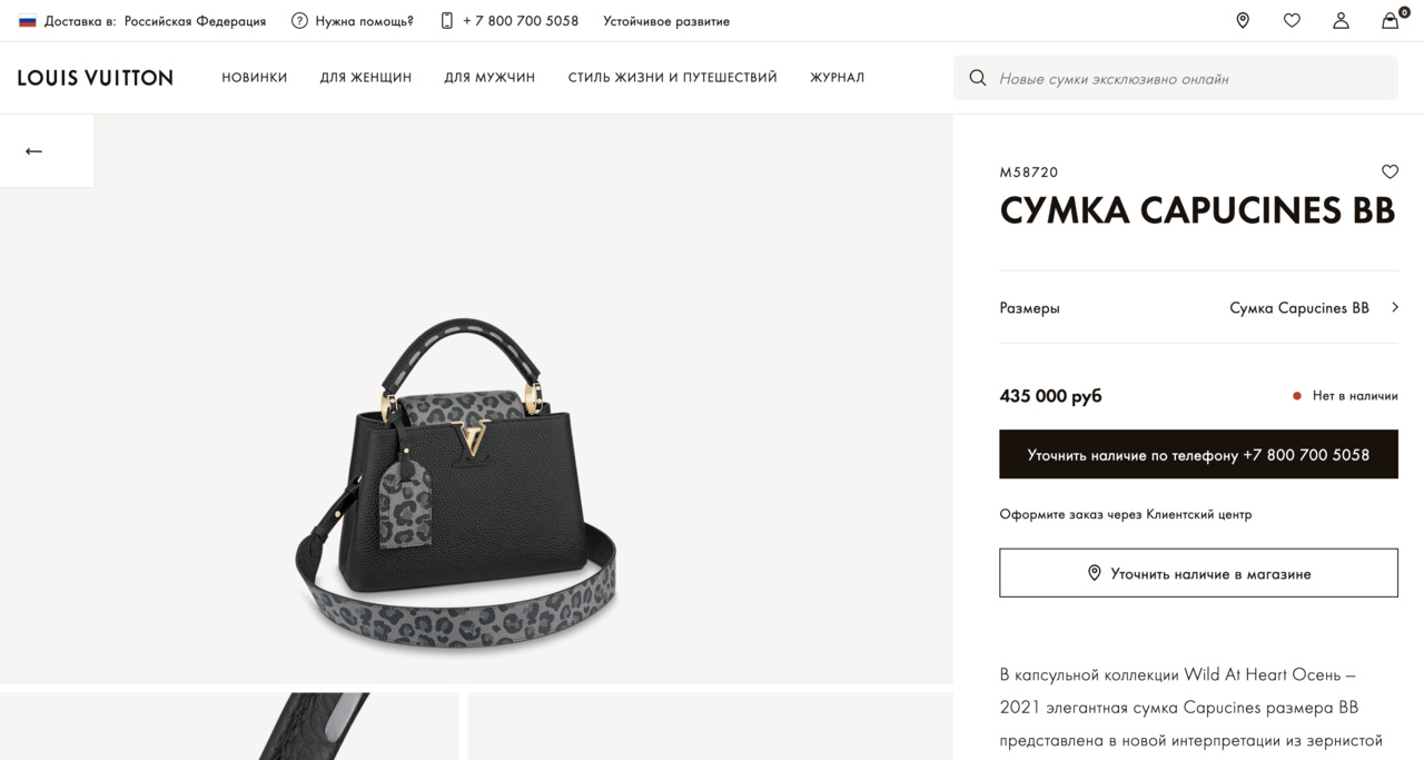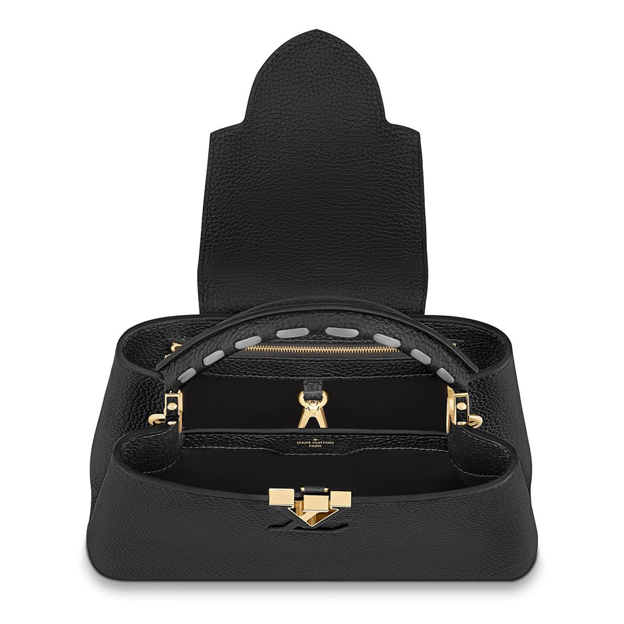 "Культовая модель Capucines - новая икона Louis Vuitton. Неизменная классика женственности, Capucines сочетает в себе стремление Дома Louis Vuitton к совершенству, творчеству и высочайшему мастерству. Создание сумки Capucines скрывает сложный творческий процесс и богатые традиции: каждая модель изготовлена из 250 элементов, которые собираются вручную самыми опытными мастерами Дома. Capucines - это уникальное сочетание элегантности, универсальности и непревзойденного мастерства. Элементы богатой истории Дома можно обнаружить повсюду, например, детали на кольцах ручек, которые напоминают об исторических сундуках Louis Vuitton. Символический узор Monogram присутствует в инициалах LV, а в отворот сумки в форме лепестка вручную встраивается металлический цветок Monogram. Классическая модель Capucines в каждом сезоне интерпретируется в новых цветах, материалах, отделке и размерах. Названная в честь первого магазина Louis Vuitton в Париже, сумка Capucines стала одной из самых изысканных моделей для создания наиболее роскошных сезонных и лимитированных вариаций."