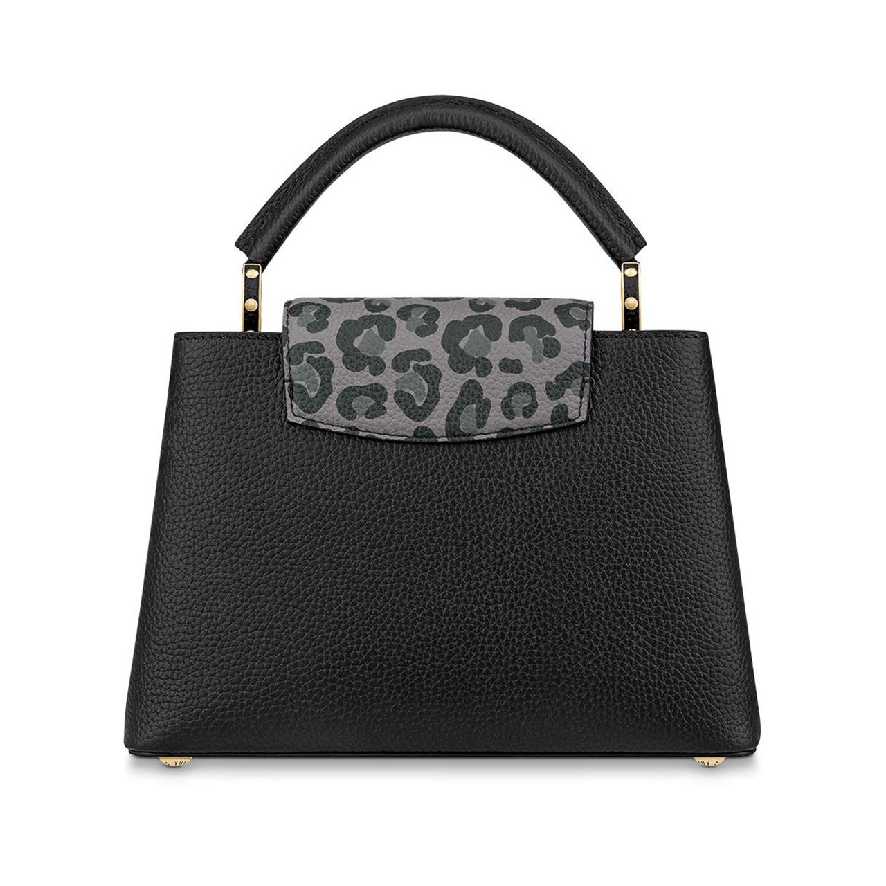 Капсульная коллекция Wild At Heart сезона Осень 2021! Самая новейшая лимитированная коллекция сезона!"Сумка Capucines получила название в честь парижской улицы, где в 1854 году был открыт первый магазин Louis Vuitton. Неподвластный времени дизайн этой сумки сейчас по праву считается новой классикой Louis Vuitton. Элегантная модель размера BB из роскошной зернистой кожи Taurillon - великолепный образец высокого мастерства Дома: легендарные инициалы LV, обтянутые кожей, крепление с отделкой в стиле традиционного багажа и функциональный клапан, украшенный цветком Monogram. В капсульной коллекции Wild At Heart Осень - 2021 элегантная сумка Capucines размера BB представлена в новой эффектной интерпретации: модный широкий плечевой ремень, съемная багажная бирка и клапан украшены ключевым в сезоне анималистическим узором, выполненным в сдержанной цветовой гамме. Роскошная модель на плечо или через плечо станет подлинным украшением любого образа."