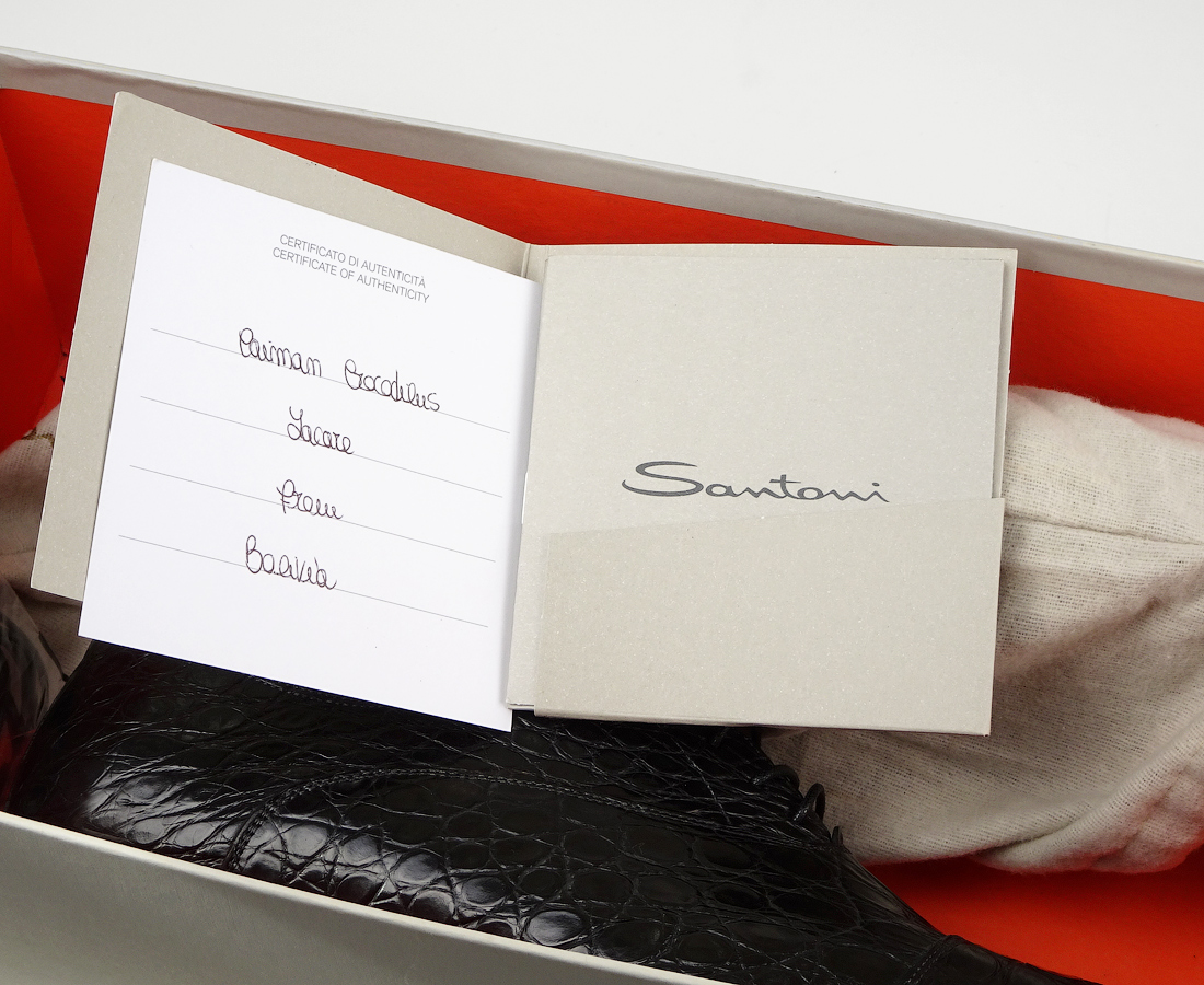 Обувь относится к премиальной линейке Santoni из экзотической кожи.