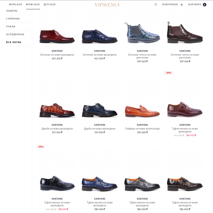Премиум-линия Santoni. Полностью ручная работа. Пошив такой обуви осуществляется от подбора кожи и до финишных операций под личным контролем одного мастера.