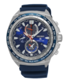 Кварцевые часы с хронографом. Технология Solar - питание от света. Дата, индикатор запаса хода, будильник. Мировое время в основных городах. 12-24х часовой формат времени. Секундомер с точностью показаний 1/5 сек и максимальным временем измерения 24 часа. Запас хода 6 месяцев. Точность хода +/- 15 секунд в месяц. Корпус из нержавеющей стали. Сапфировое стекло с антибликовым покрытием. Силиконовый ремешок.