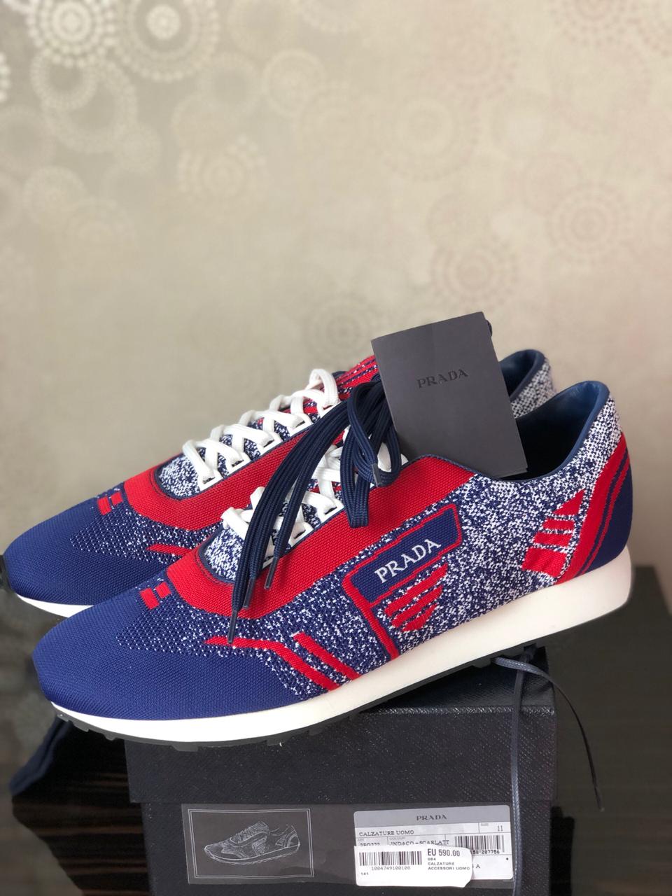 PRADA новые мужские кросссовки,цвет синий/красный (11 UK/45 EU size)