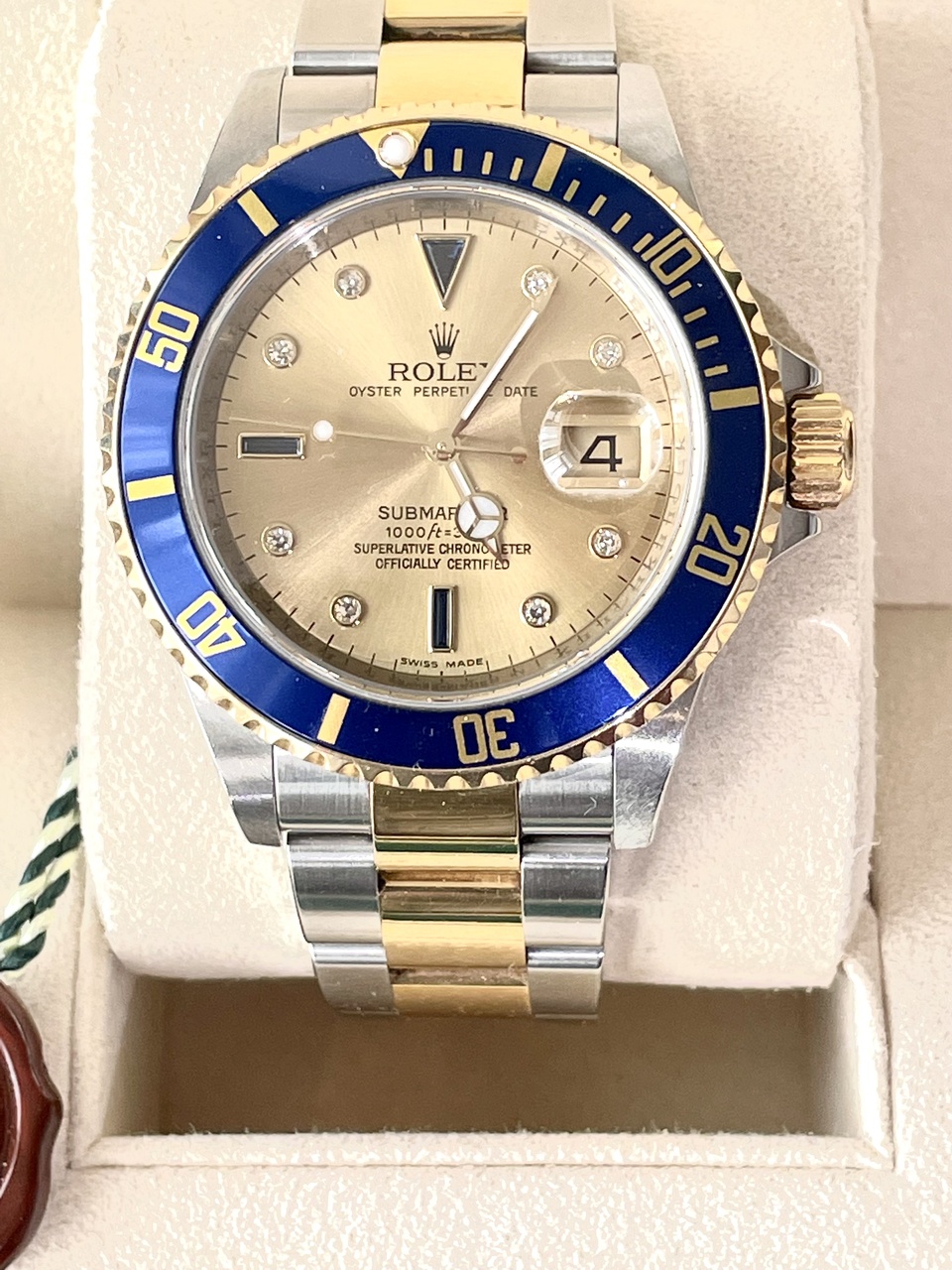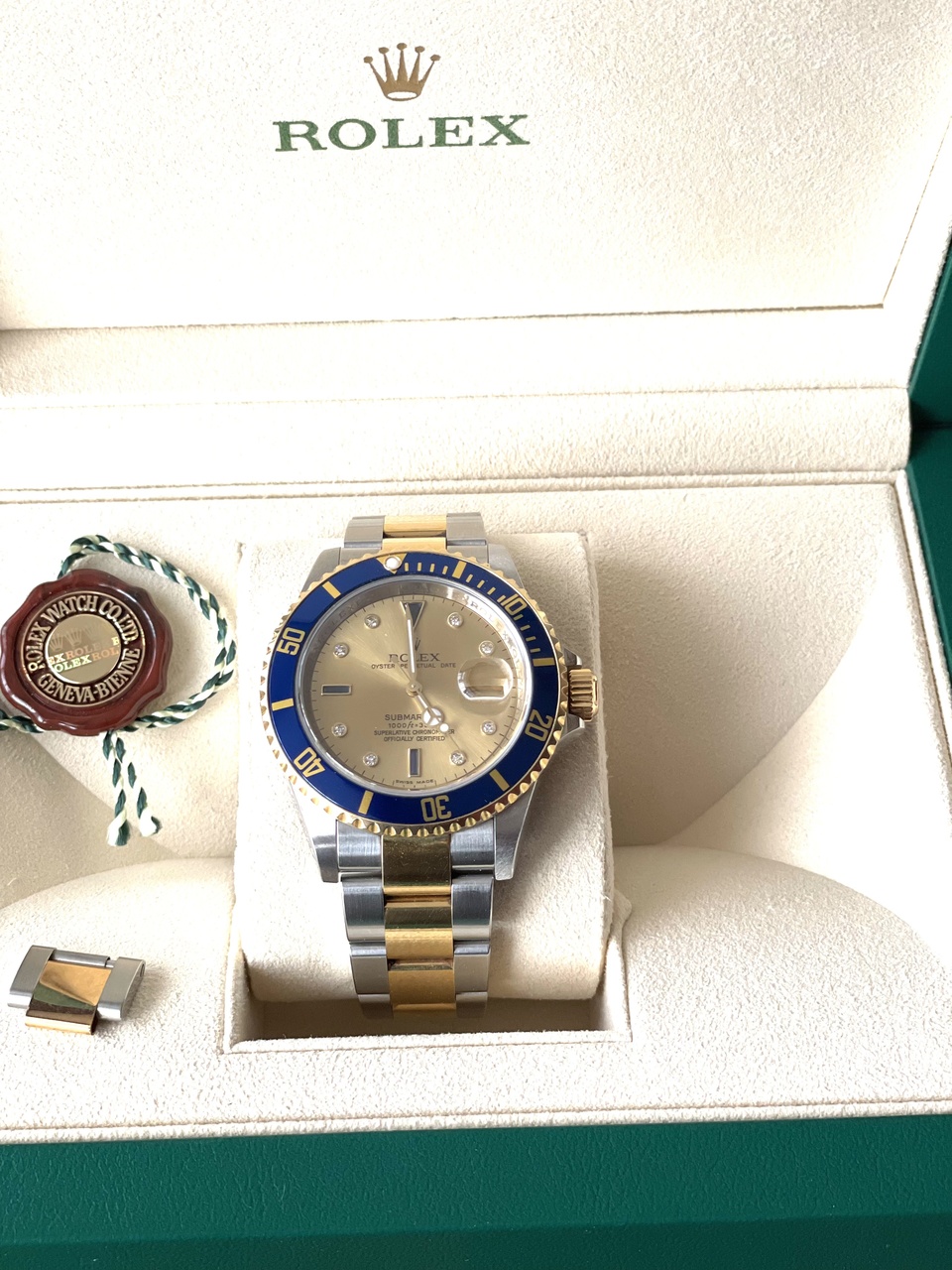 Ref. 16613, диаметр 40 мм, купленные в Москве в Mercury (с полным набором документов и коробкой), сталь с золотом и бриллиантами которые совсем не мешают часам быть мужественными))