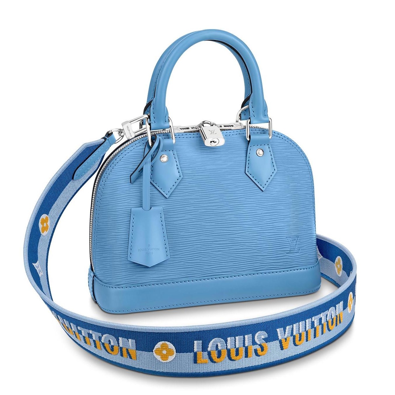 а здесь он уже идет в комплекте!"Очаровательная сумка Alma BB - родственница оригинальной иконы стиля Ар Деко, созданной в 1934 году. Миниатюрная версия сумки легко вмещает ключи, кошелек, телефон и помаду. Сумка изготовлена из кожи Epi яркого цвета. Желанный аксессуар дополнен широким плечевым ремнём из текстиля с жаккардовым узором в виде подписей Louis Vuitton и цветов Monogram. Модель с искусной отделкой незаменима для создания уверенного образа."