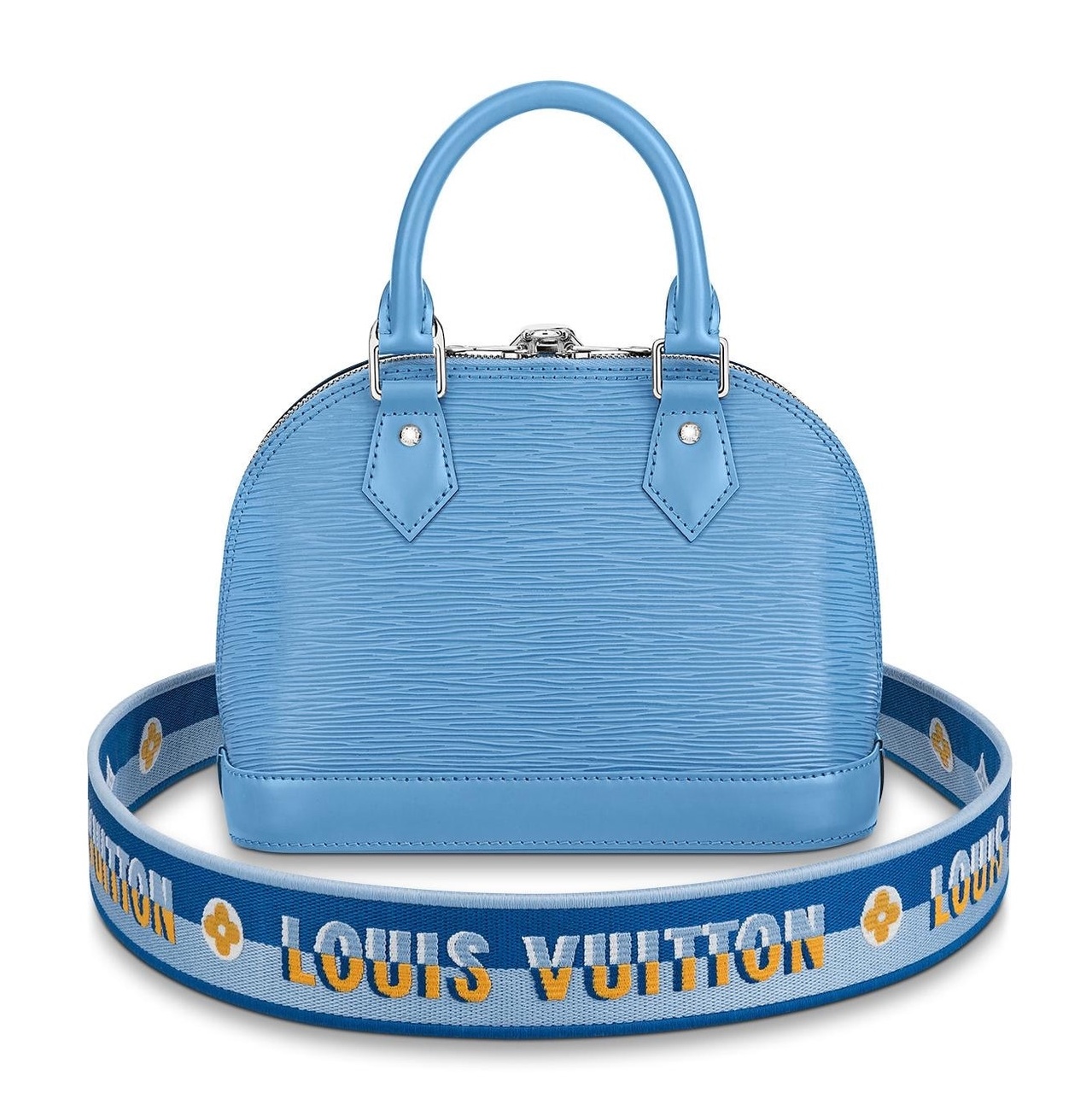 Отличие этой лимитированной версии от обычной Alma BB - крутой плечевой ремень. У классических сумок Alma BB простой тонкий ремешок.