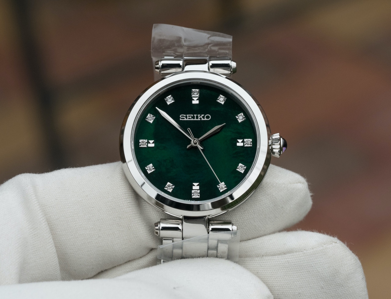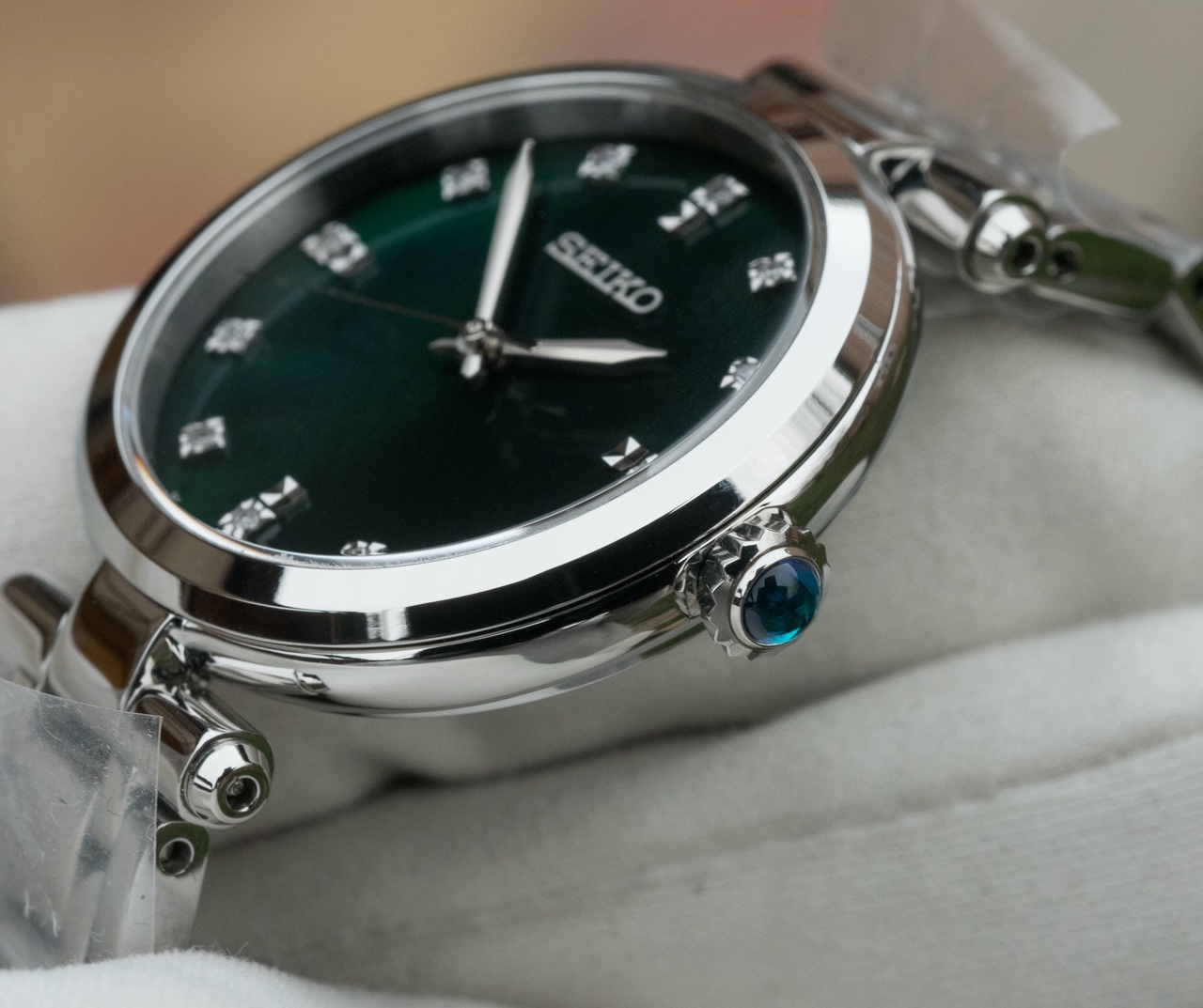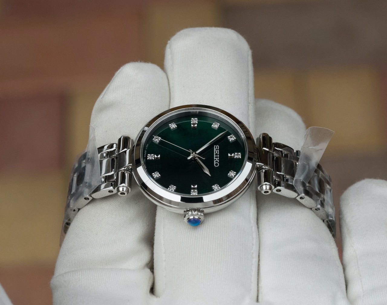 Очень красивая женская модель с зеленым циферблатом и бриллиантами на метках!