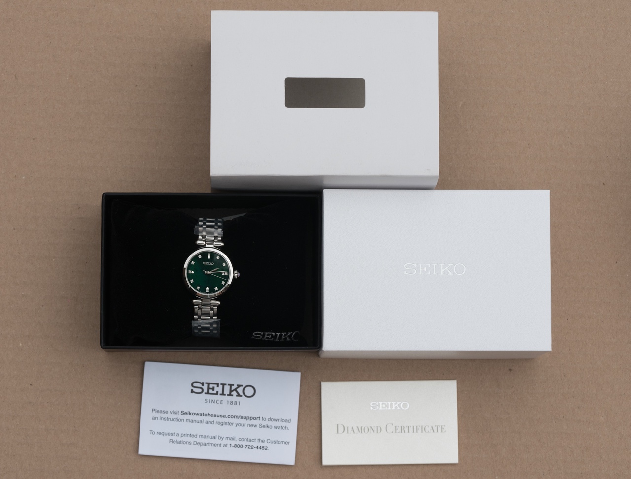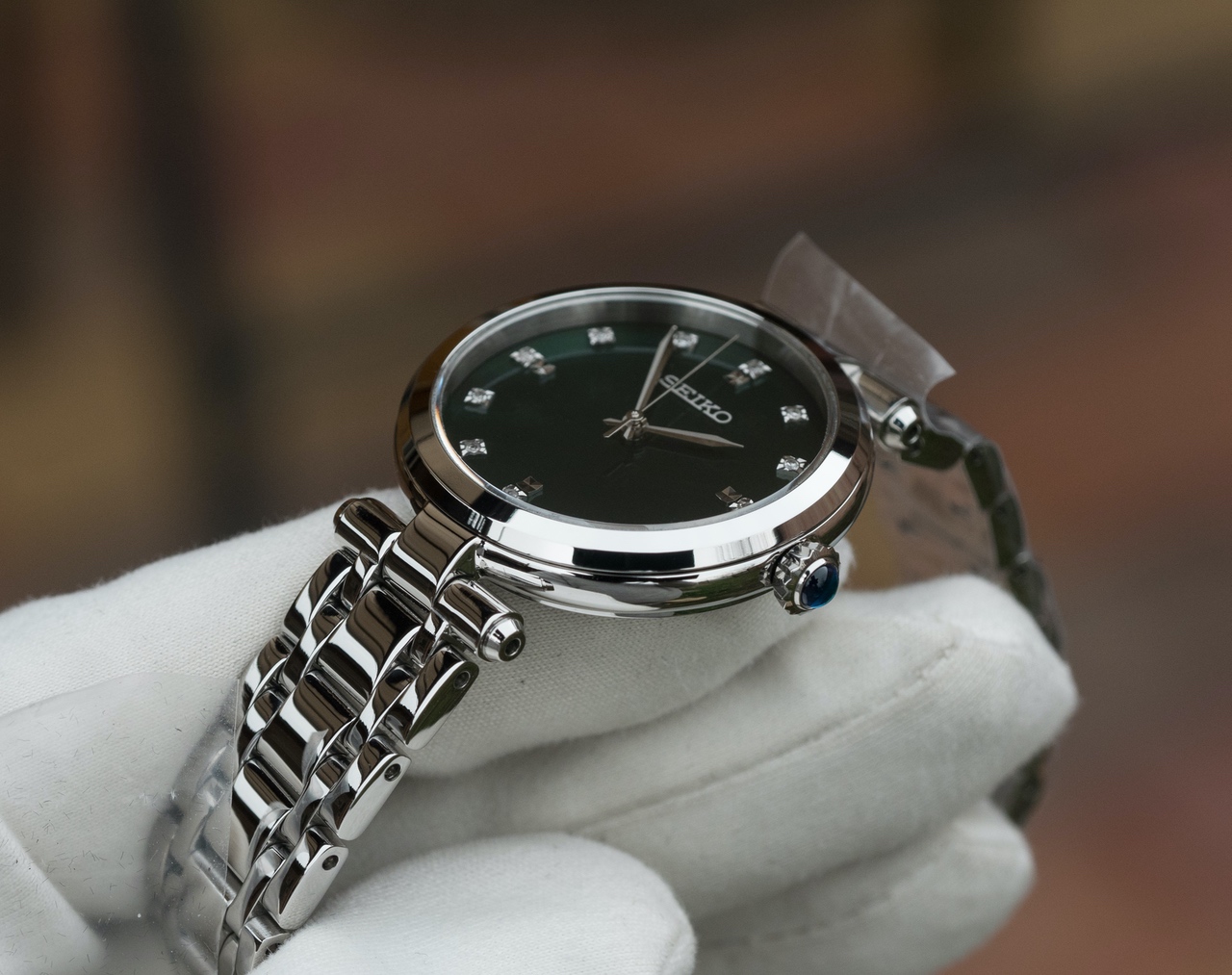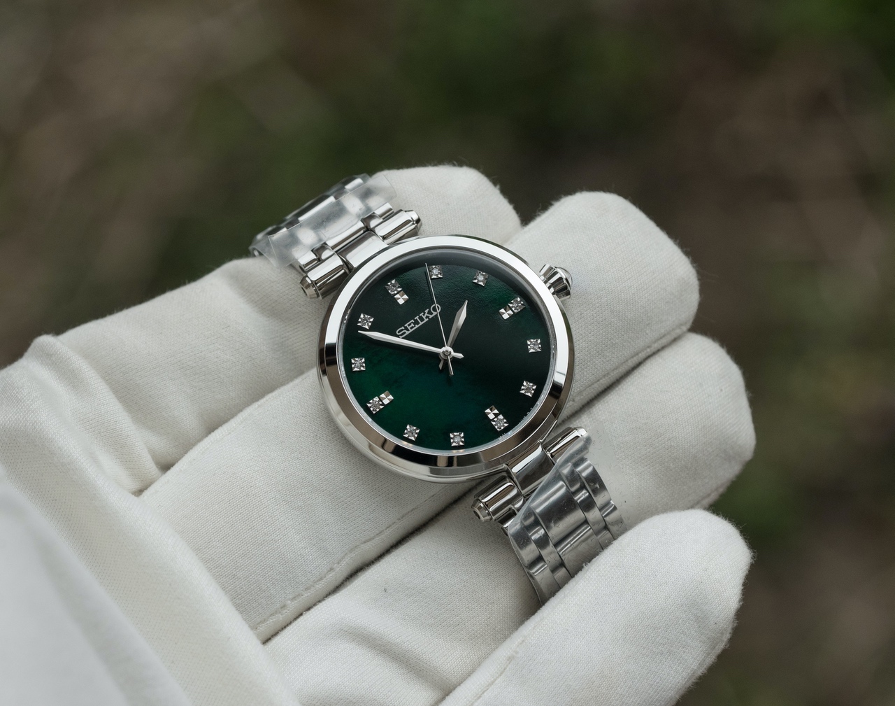 Очень красивая женская модель с зеленым циферблатом и бриллиантами на метках!